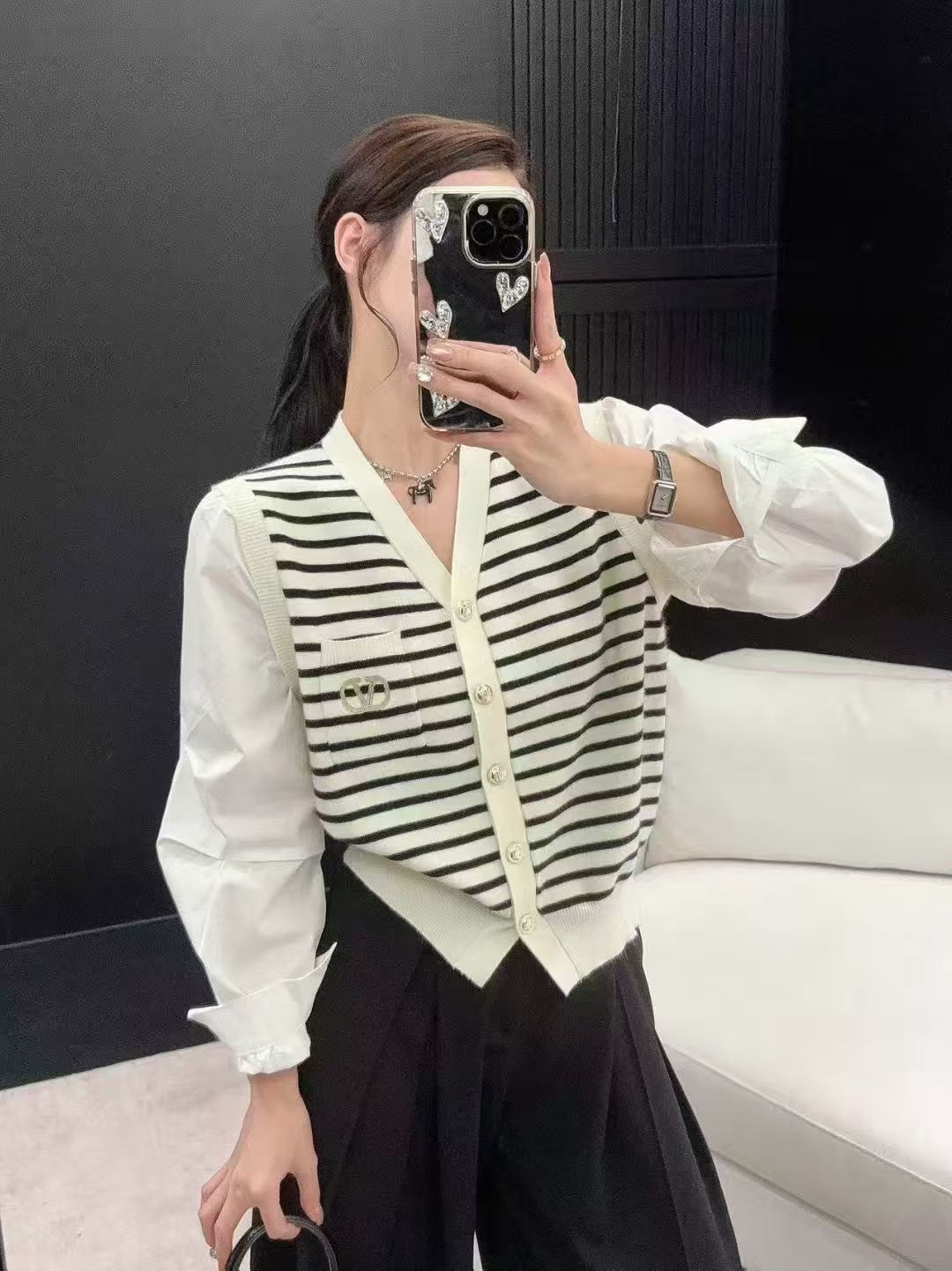 FA46382# 欧洲站早春新款欧货格子长袖衬衫拼接羊毛针织衫+披肩假两件 服裝批發女裝批發服飾貨源