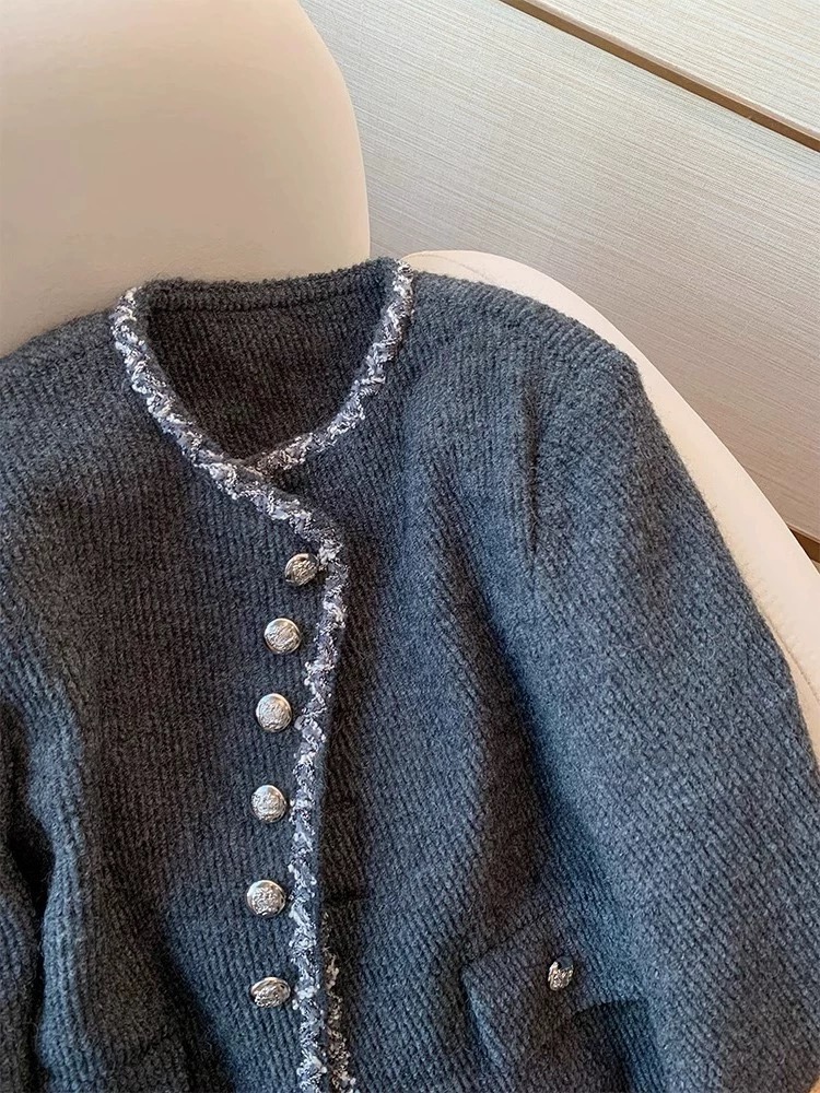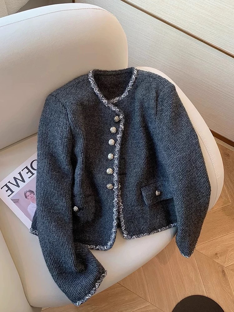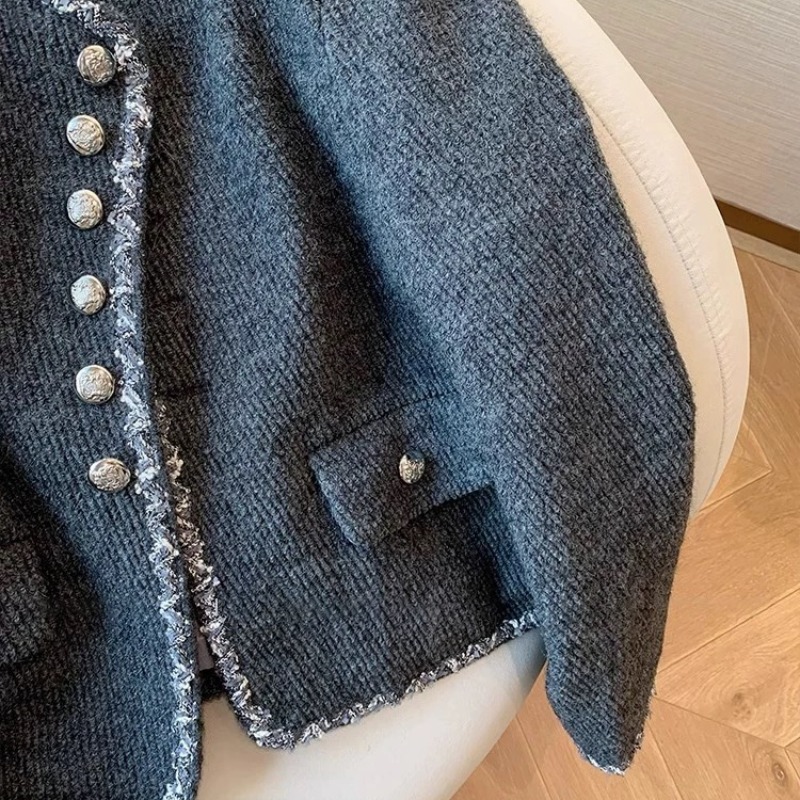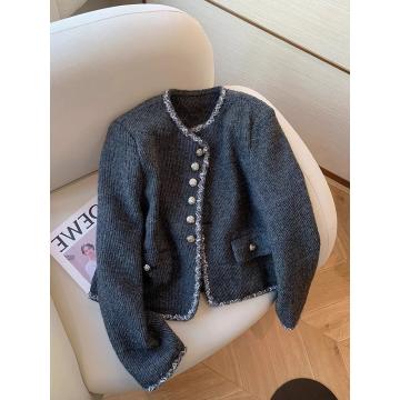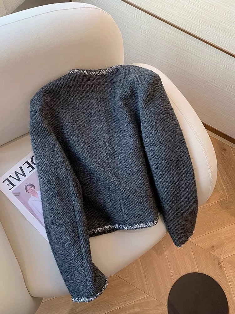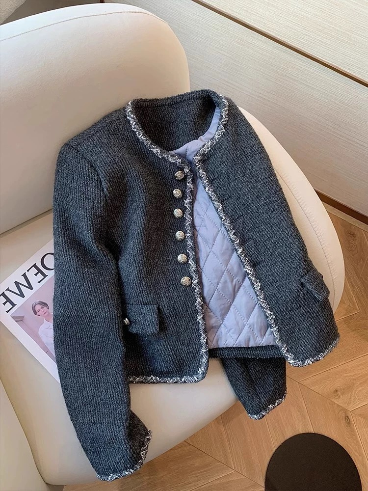 FA46510# 灰色夹棉法式正肩名媛气质短款小香风外套女士小个子高级感轻熟风