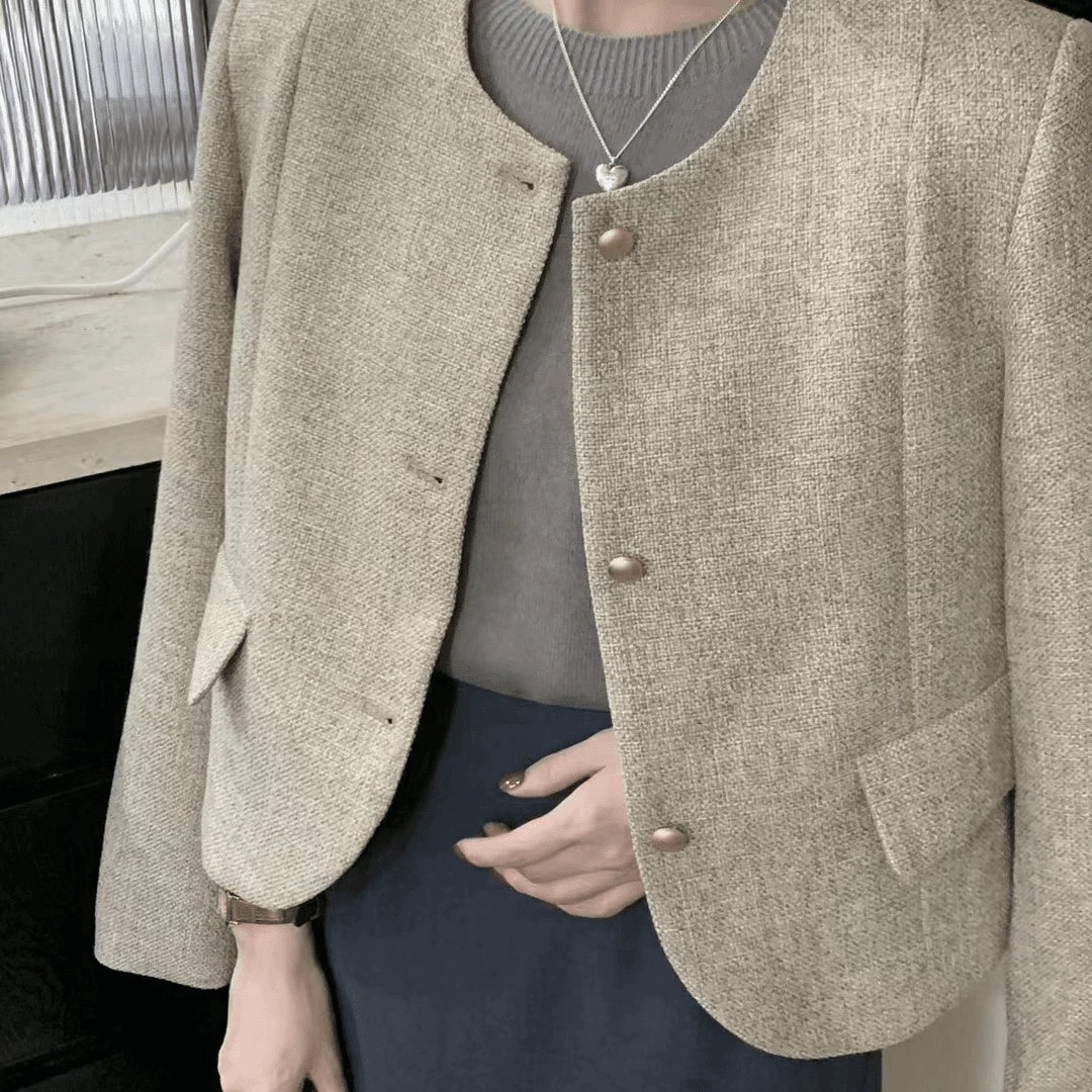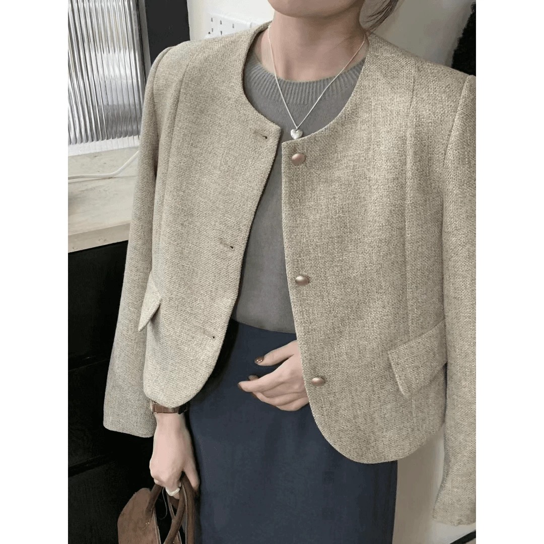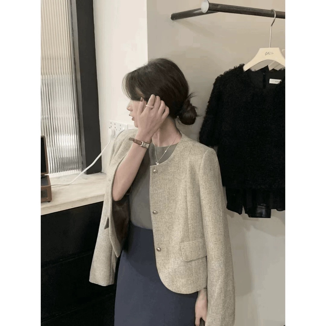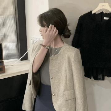 FA46512# 新款气质名媛香风外套圆领短外套上衣短款小个子西装复古秋季法式