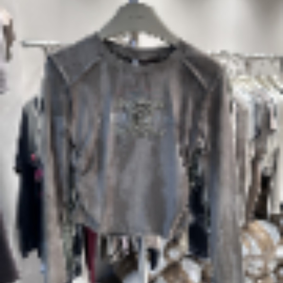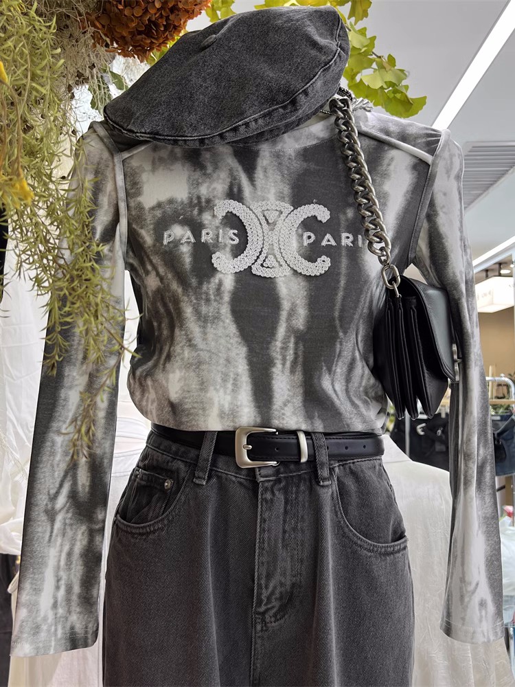 FA46573# 德绒螺纹/重工刺绣长袖t恤女晕染工艺短款打底衫