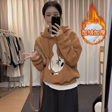 FA51321# 纯棉华棉复合奥粒绒卫衣女秋冬季卡通印花潮连帽保暖上衣 服裝批發女裝批發服飾貨源