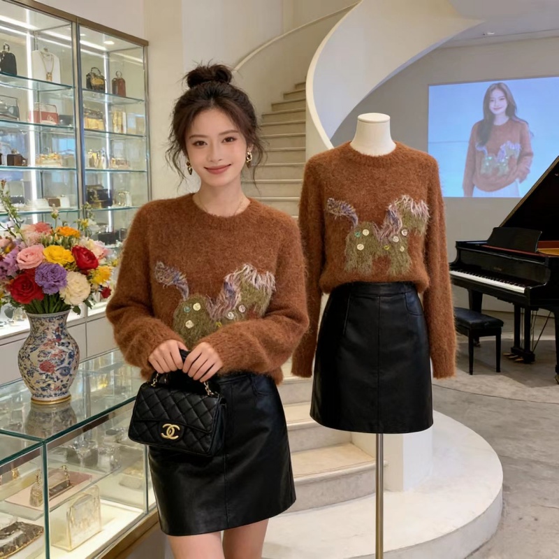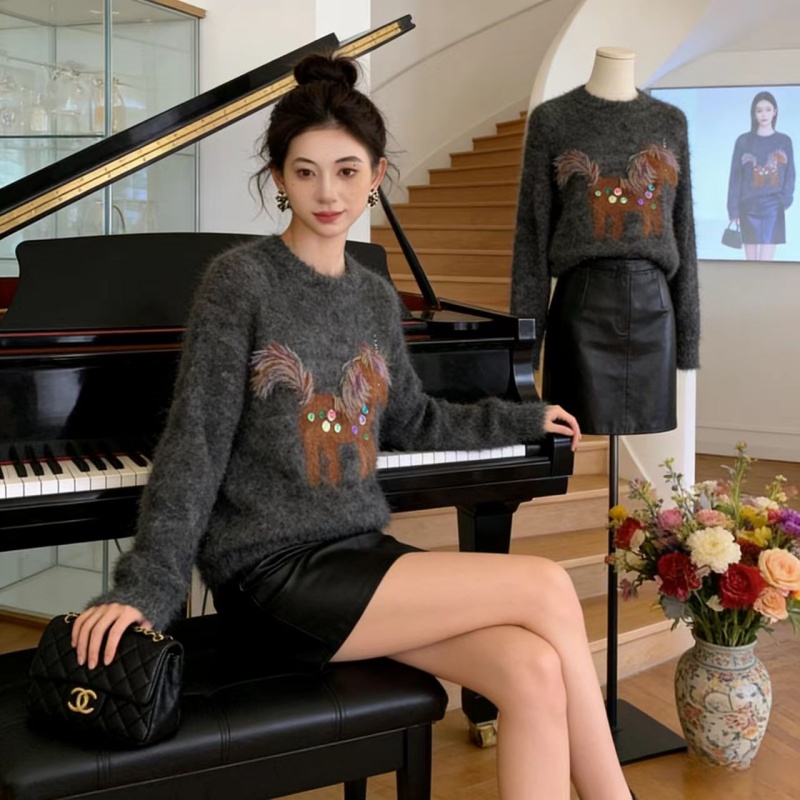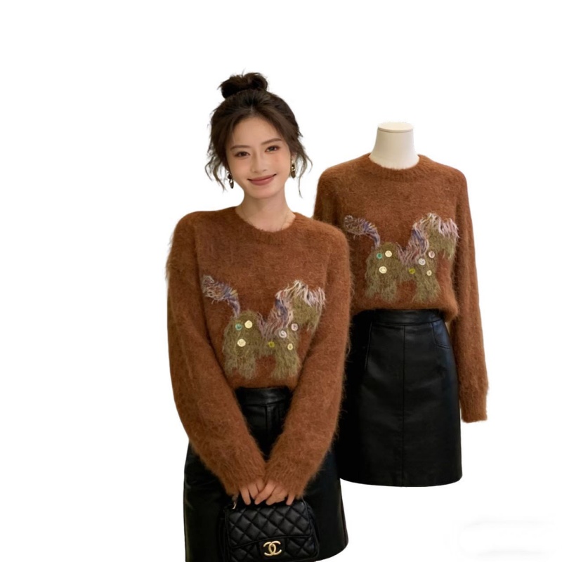 FA51502# 圣诞小马新年毛衣粗支缎染亮片苏利羊驼毛显瘦针织衫女冬 服裝批發女裝批發服飾貨源