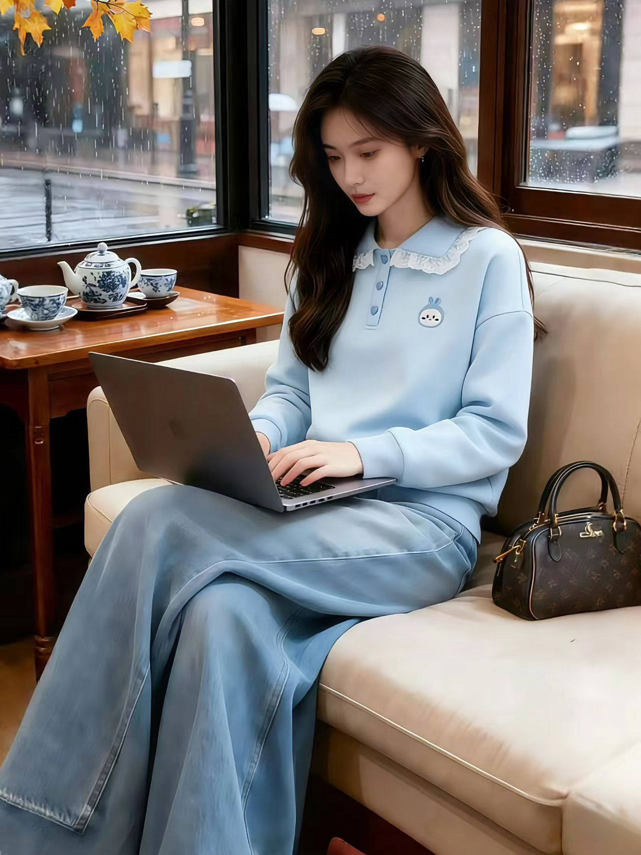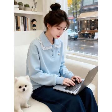 首页 > 卫衣 > FA51526# 韩系蓝色polo衫翻领上衣女春装新款宽松慵懒风卫衣 服裝批發女裝批發服飾貨源