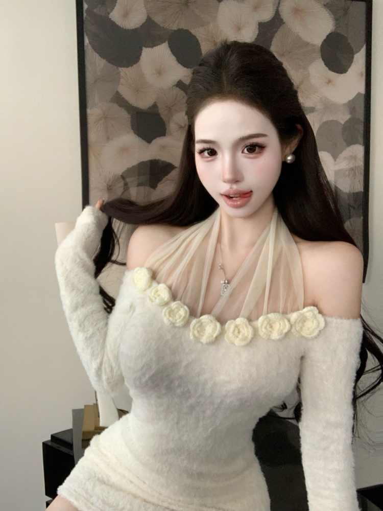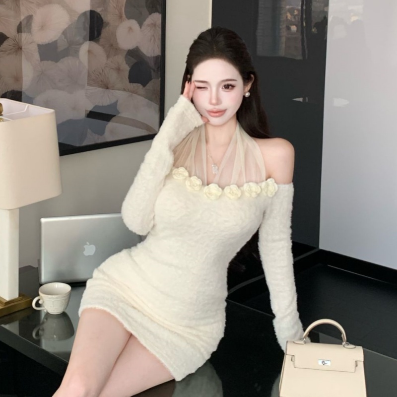 FA51770# 性感网纱拼接长袖女秋季新款修身显瘦露肩辣妹包臀连衣裙 服裝批發女裝批發服飾貨源