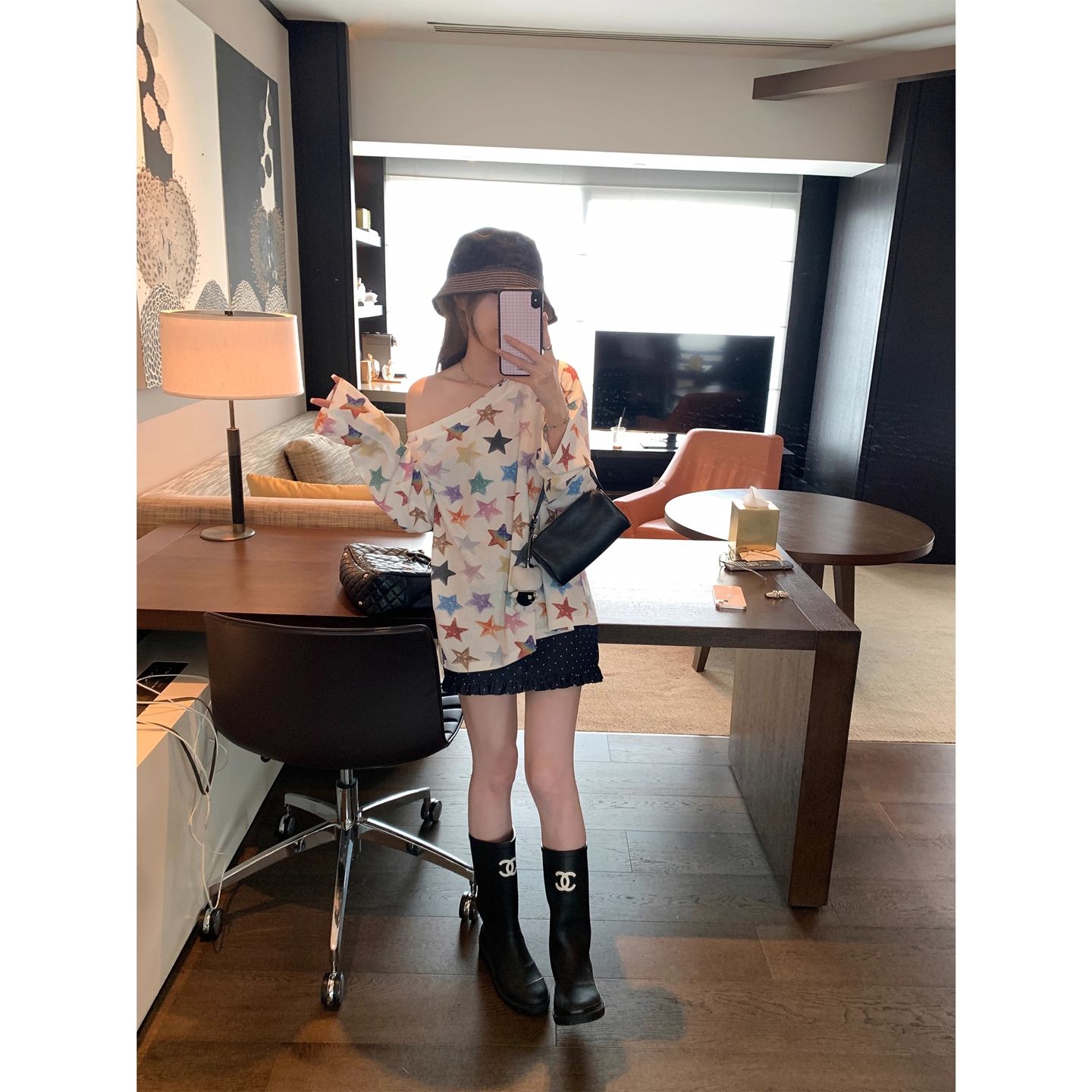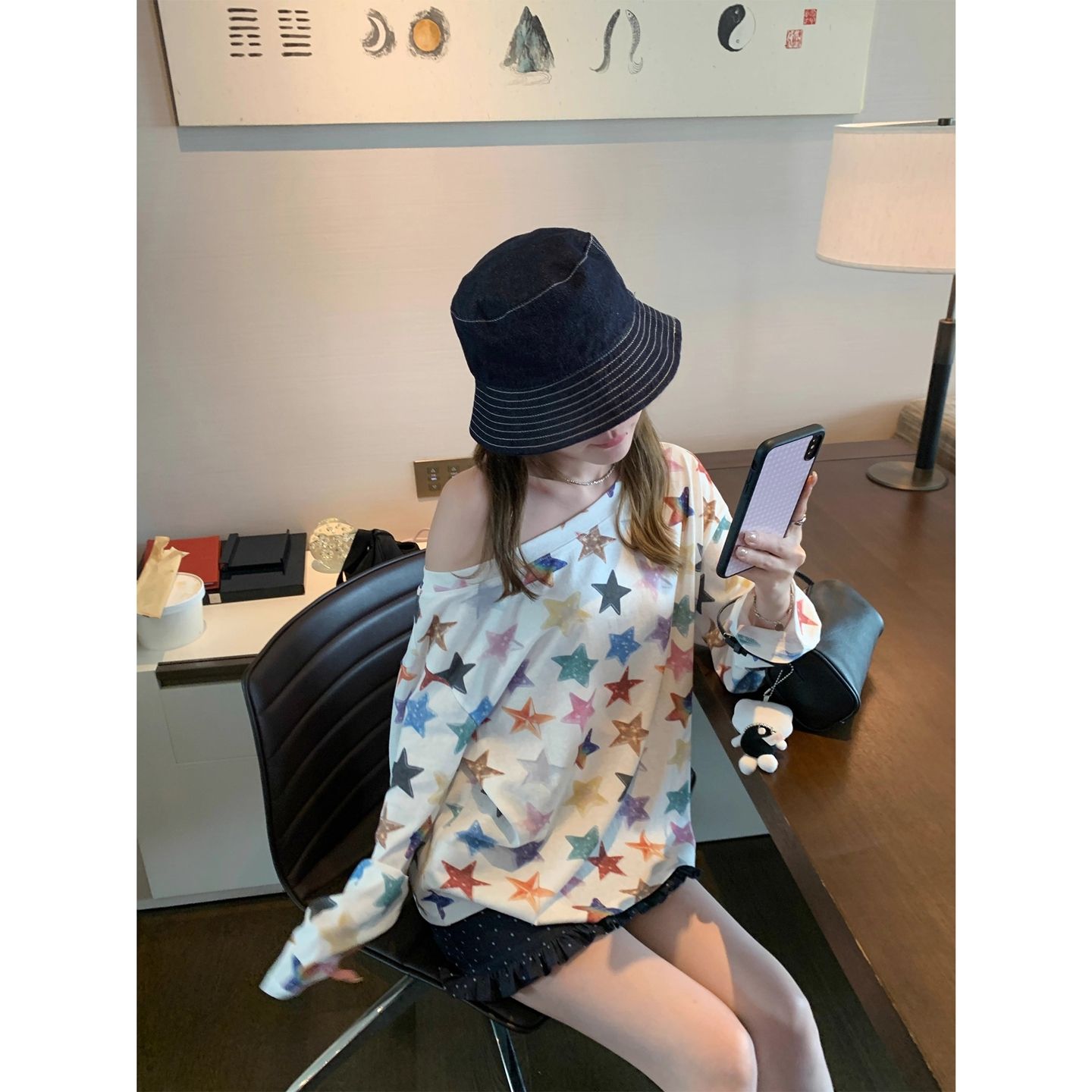 FA51779# +原版质量软糖星星灯长袖T恤新款巨好看斜肩上衣 服裝批發女裝批發服飾貨源