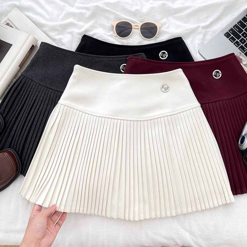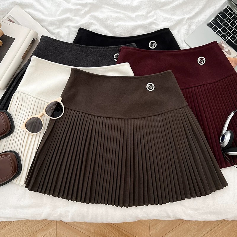 FA55924# 学院风jk灰色毛呢半身裙女秋冬高腰显瘦a字百褶裙纯欲辣妹短裙子 服裝批發女裝批發服飾貨源