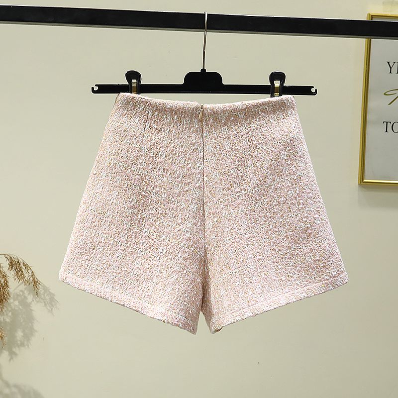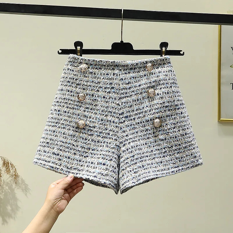 FA56016# 秋冬季毛呢短裤女高腰小香风排扣格子阔腿裤显瘦小个子A字休闲裤 服裝批發女裝批發服飾貨源