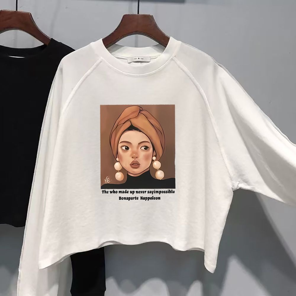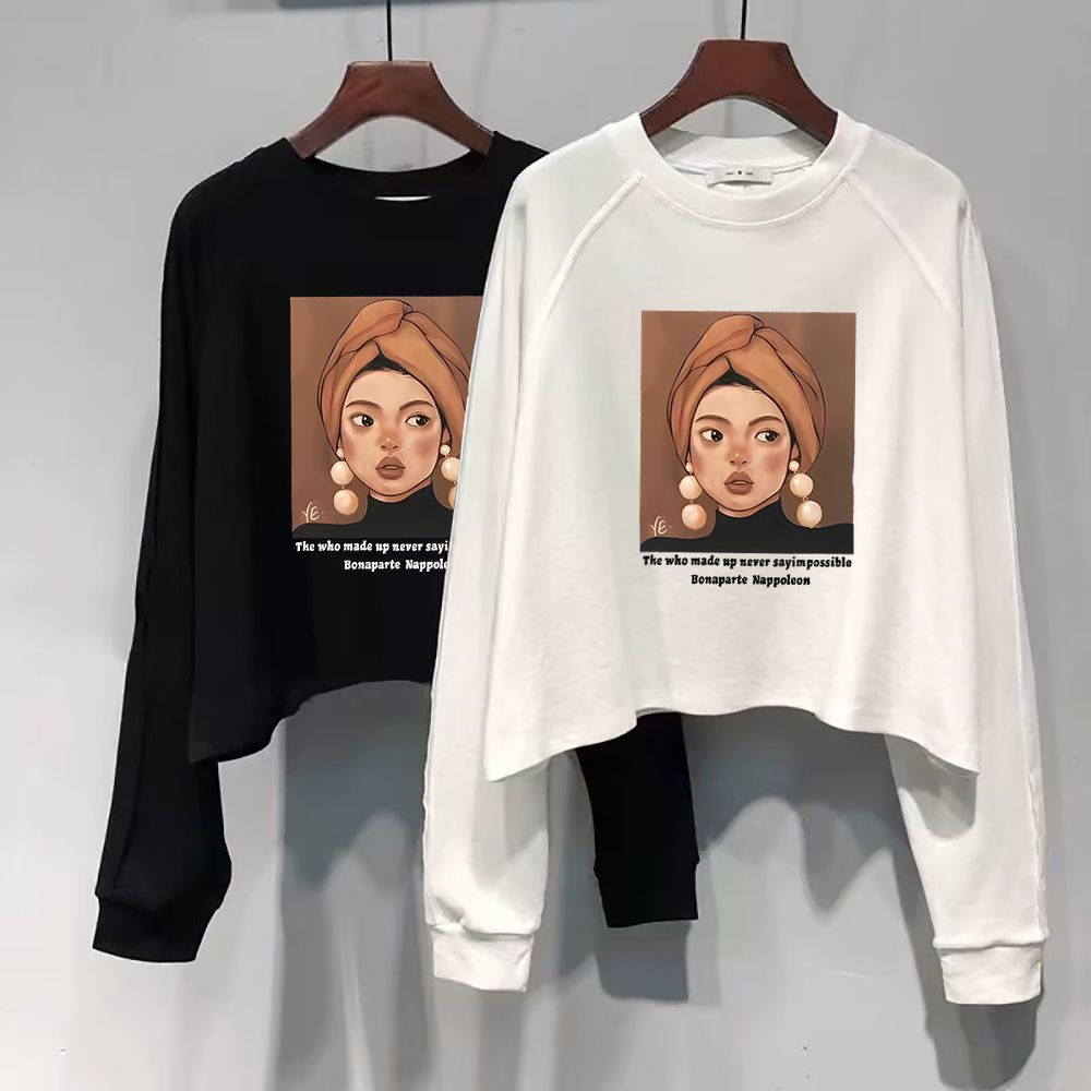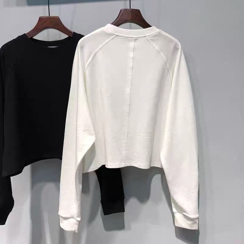 FA44070# 秋装新款圆领宽松韩范短款长袖T恤上衣女 服裝批發女裝批發服飾貨源