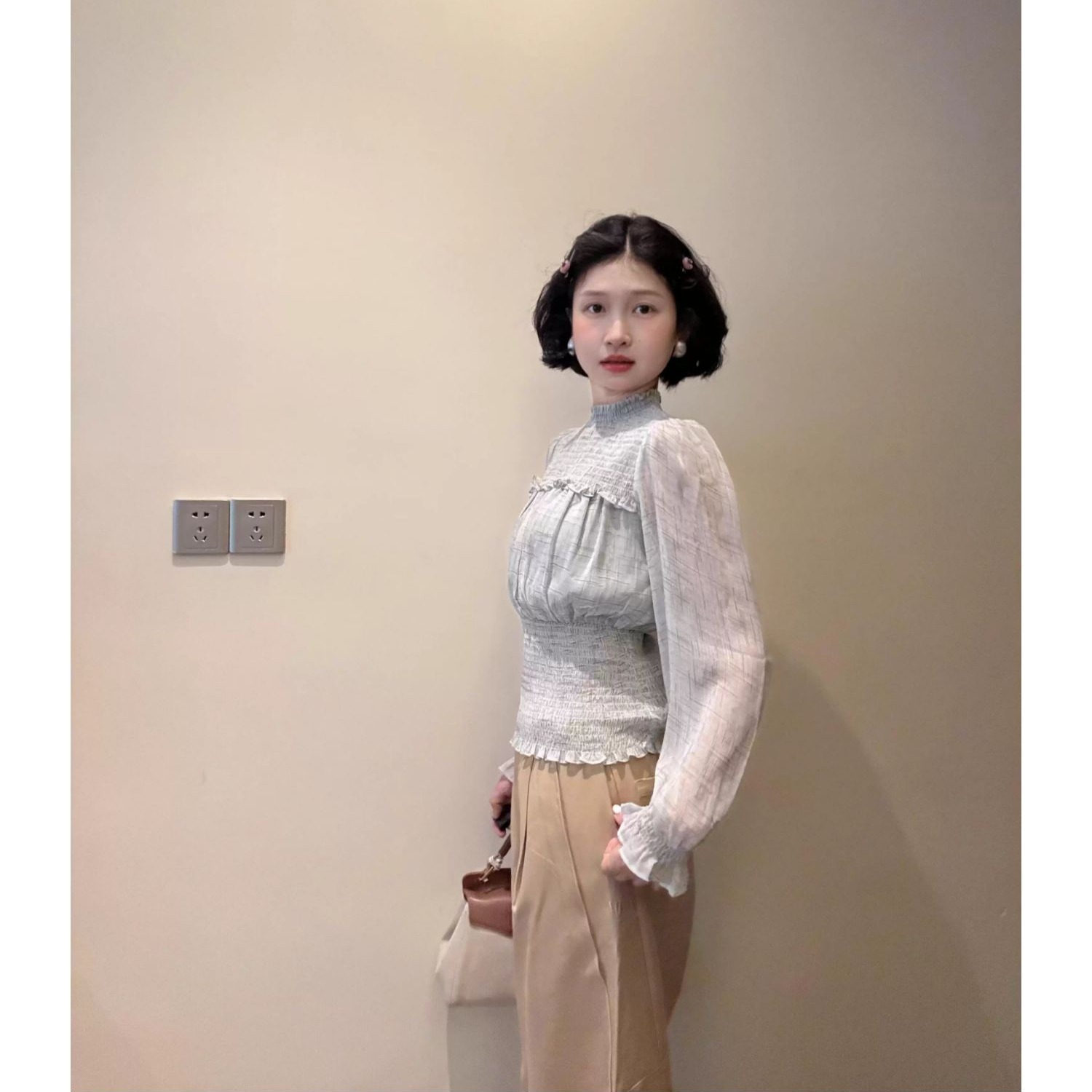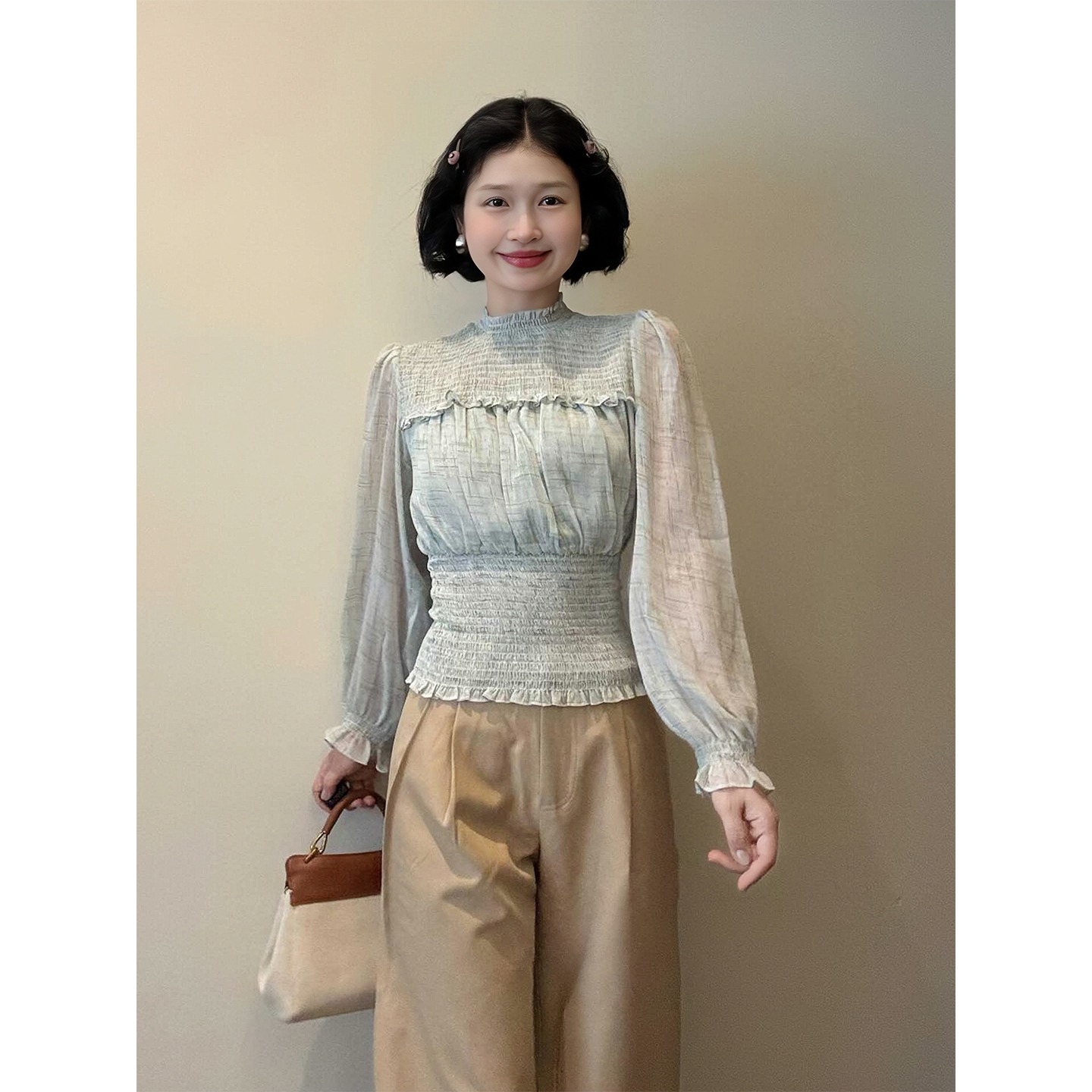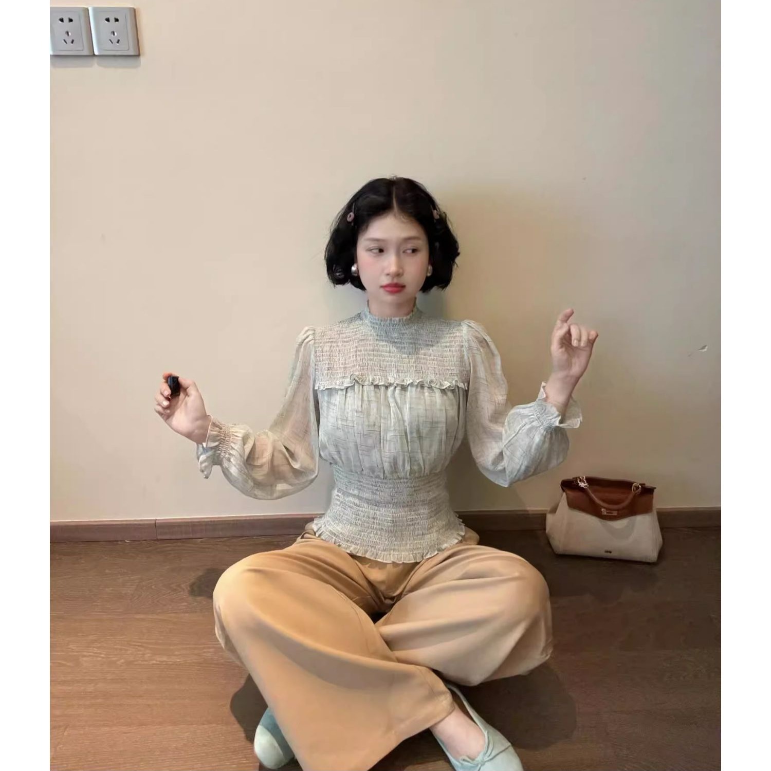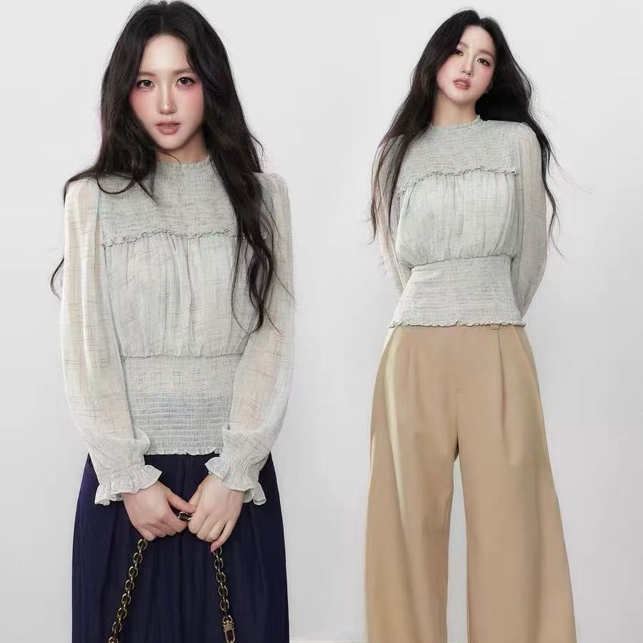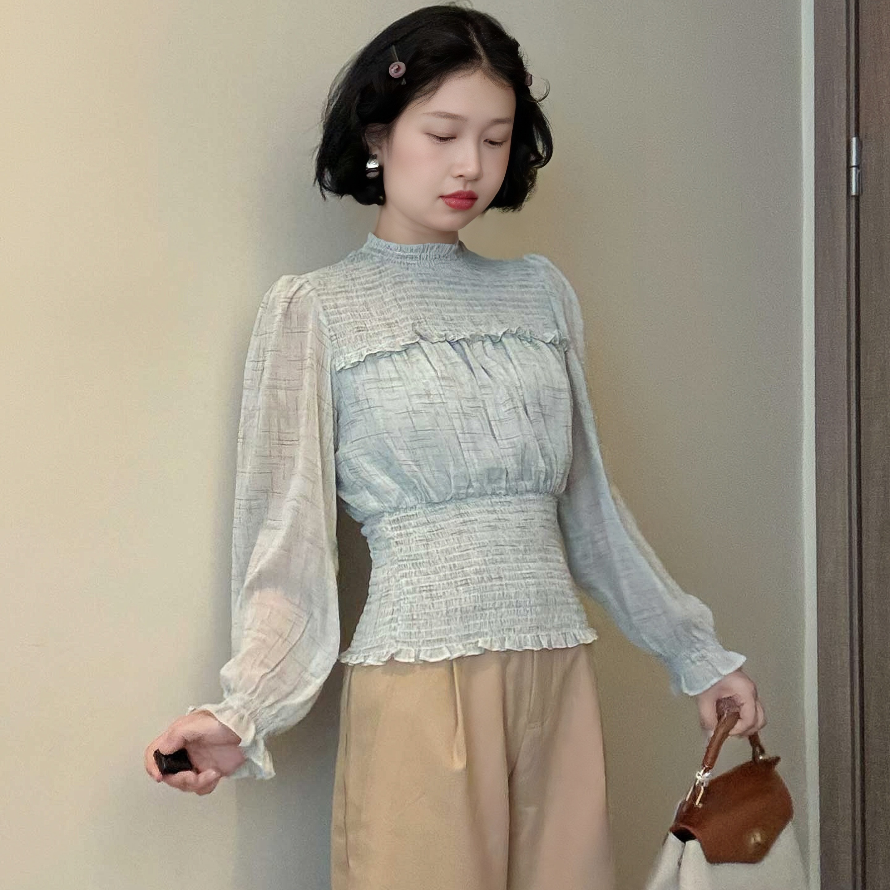 Home > 长袖雪纺衫、衬衫、上衣 > FA44101# 茶雾青衫独特漂亮的雪纺衫女早秋防晒收腰长袖修身显瘦上衣潮 服裝批發女裝批發服飾貨源