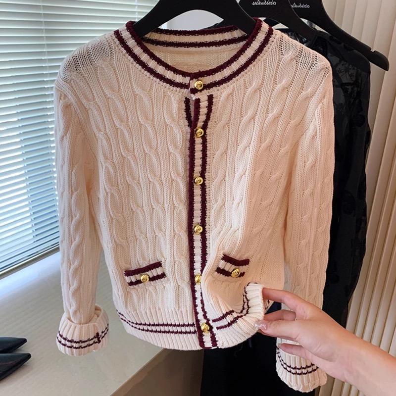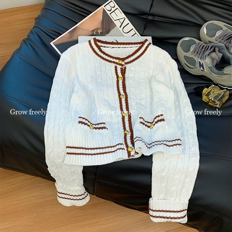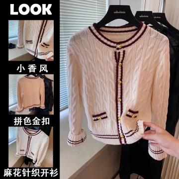 FA44102# 小香风软糯麻花针织开衫女秋冬新款高级感金扣毛衣设计 服裝批發女裝批發服飾貨源