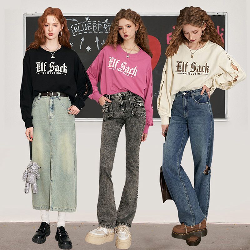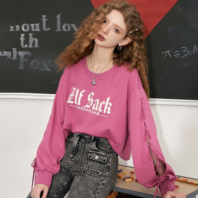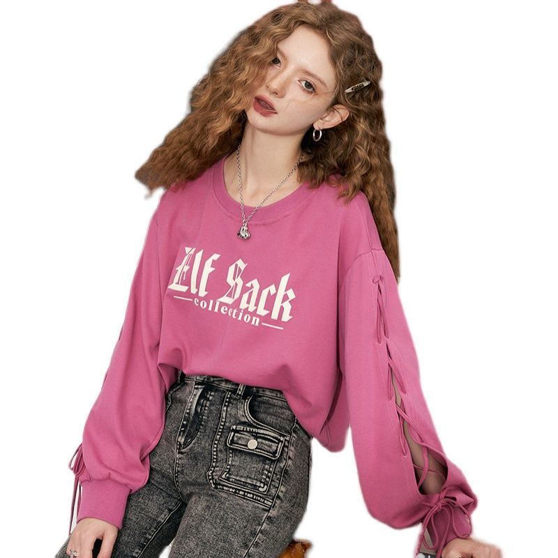 FA44106# 宽松多巴胺设计感长袖上衣潮系带镂空美式圆领卫衣女 服裝批發女裝批發服飾貨源