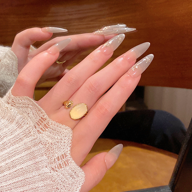 CX13602# 最便宜饰品批发 韩系爆款鸽子蛋猫眼石戒指女个性高级感简约气质开口食指戒指环