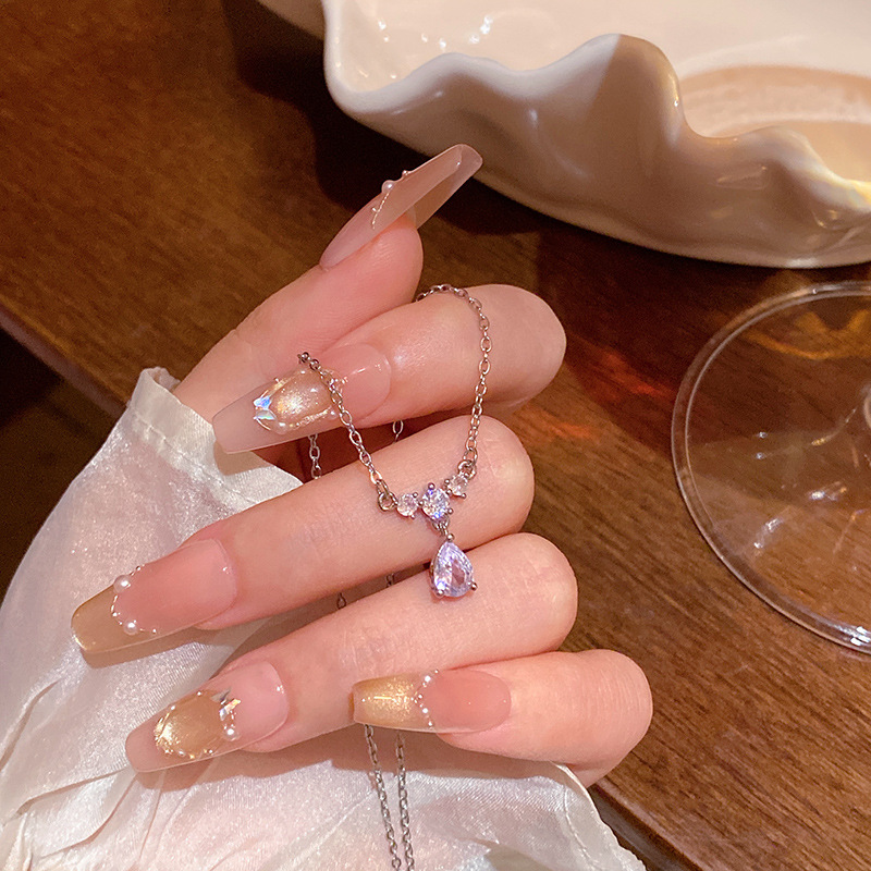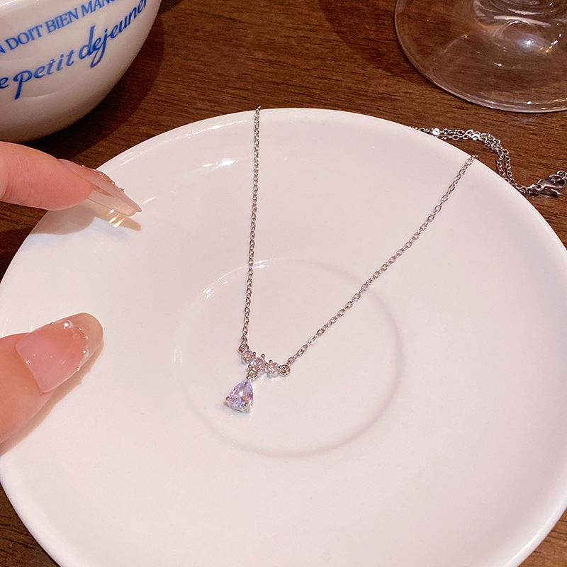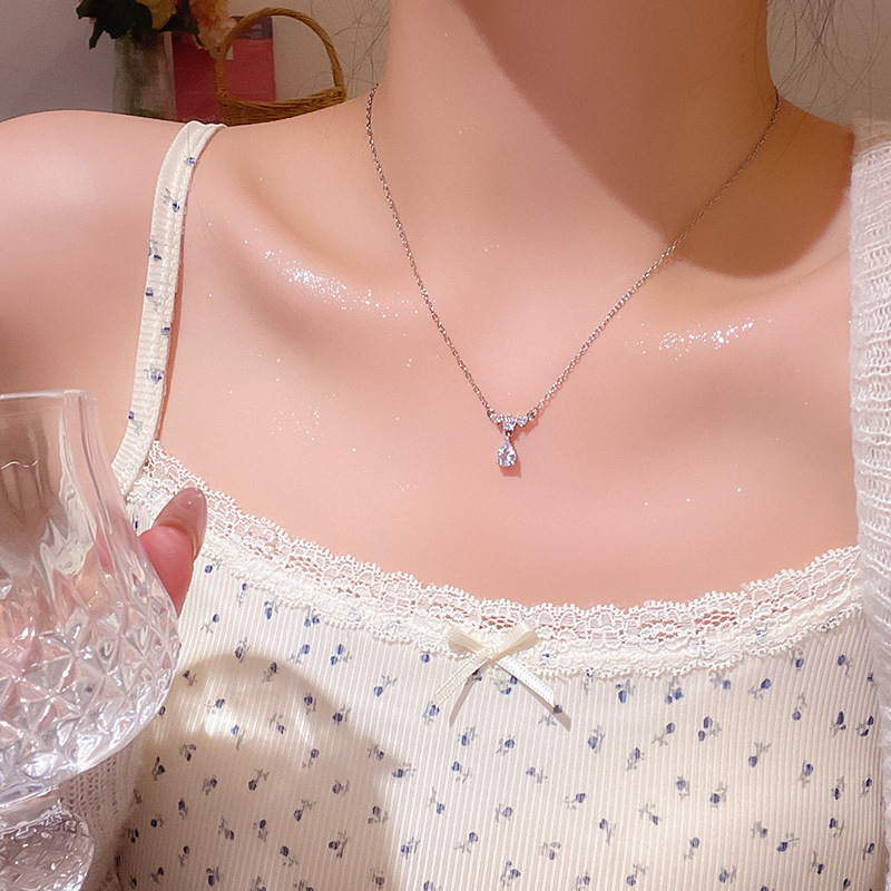 CX13605# 最便宜饰品批发 人鱼之泪水滴形锆石吊坠项链轻奢小众超仙百搭气质钛钢锁骨链颈链