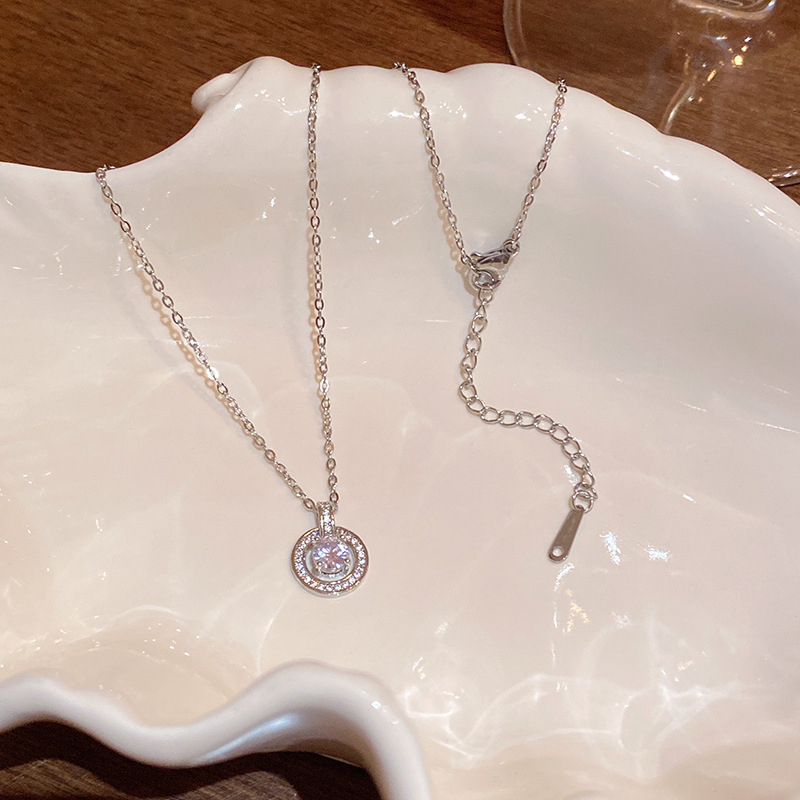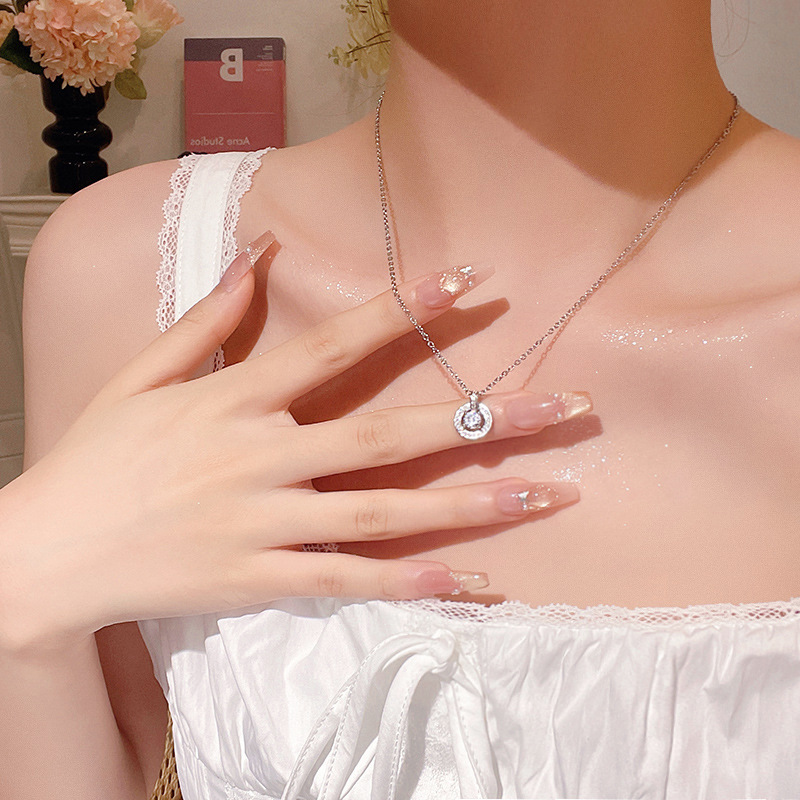 CX13606# 最便宜饰品批发 跳动的心灵动锆石吊坠项链轻奢小众高级感爆闪满钻钛钢锁骨链颈链