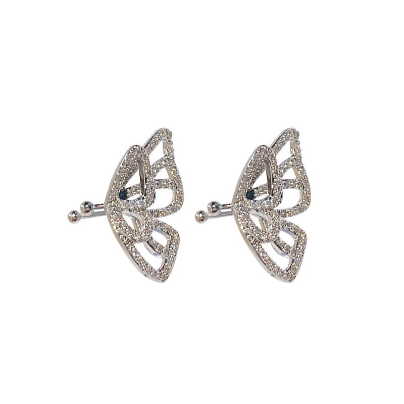 CX13609# 最便宜饰品批发 轻奢小众微镶满钻蝴蝶耳环高级感无耳洞耳骨夹立体感蝴蝶耳钉耳饰