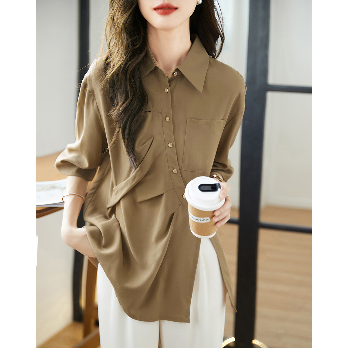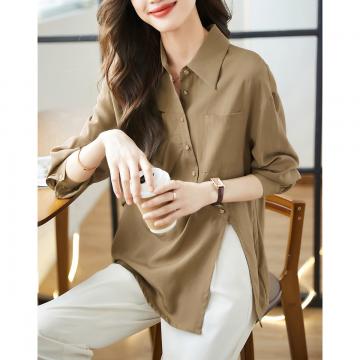 FA44401# 秋款优雅时尚不对称女士衬衫不对称纽扣时尚女士衬衫 服裝批發女裝批發服飾貨源