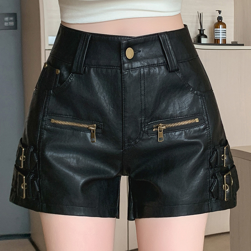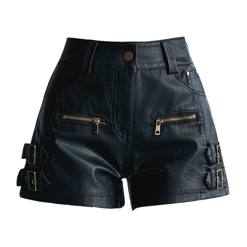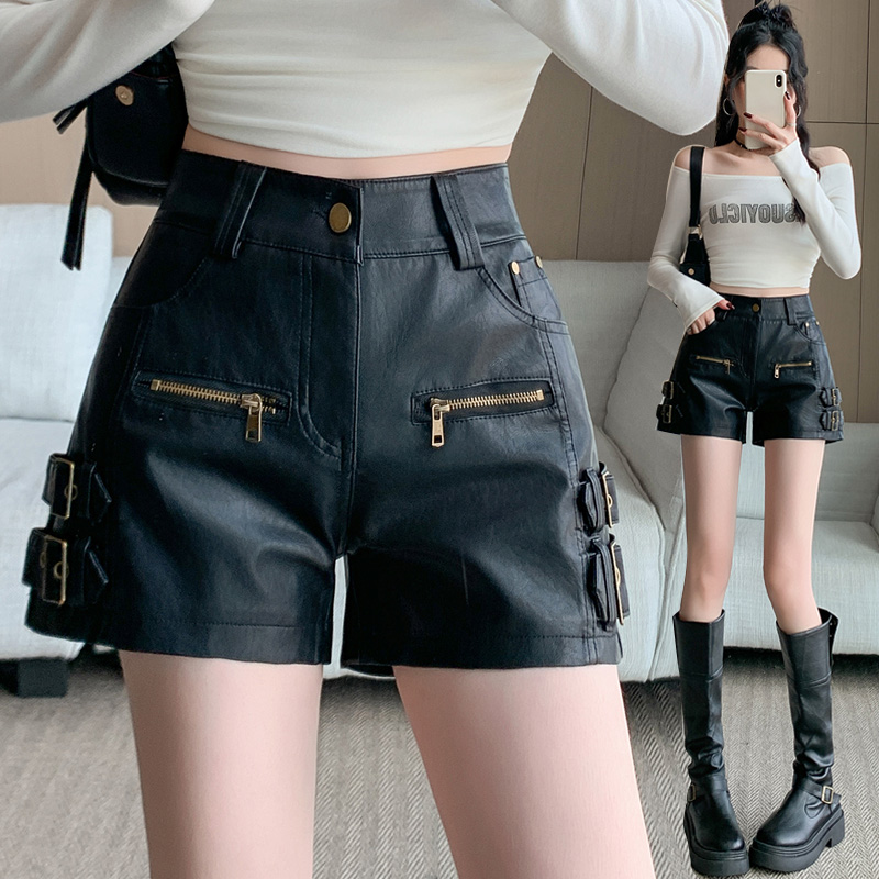 FA44549# 新款美式复古气质白搭黑色辣妹性感高腰A字洗水PU皮短裤热裤 服裝批發女裝批發服飾貨源