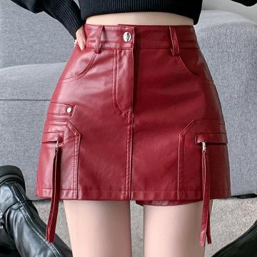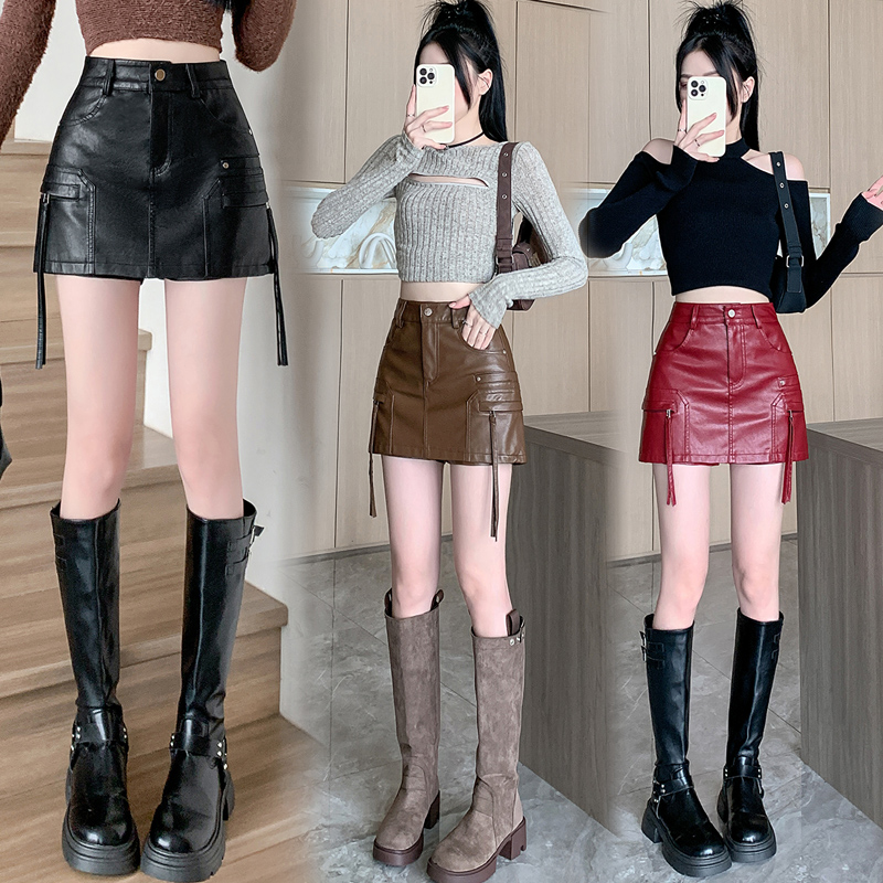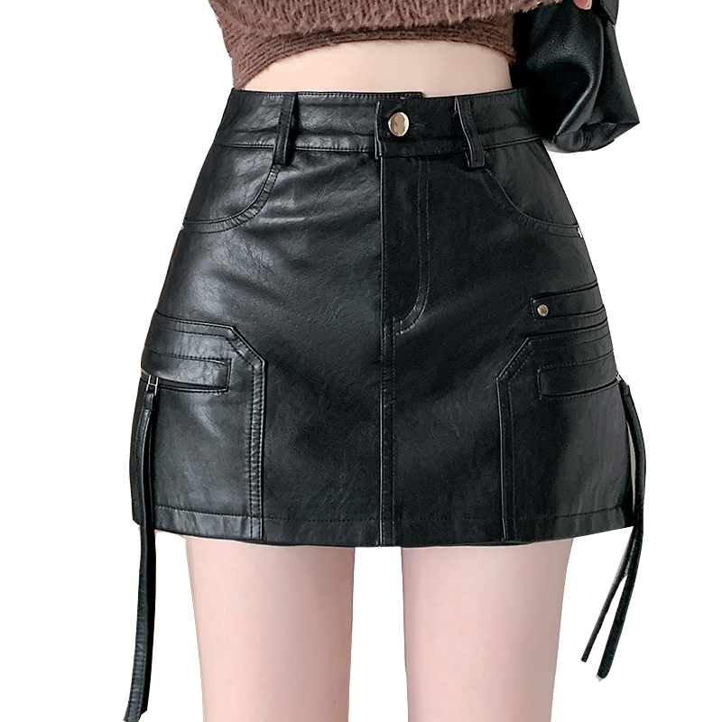 FA44550# 秋冬新款PU皮工装半身裙好质量高温洗水高腰短裙修身包臀裤裙 服裝批發女裝批發服飾貨源