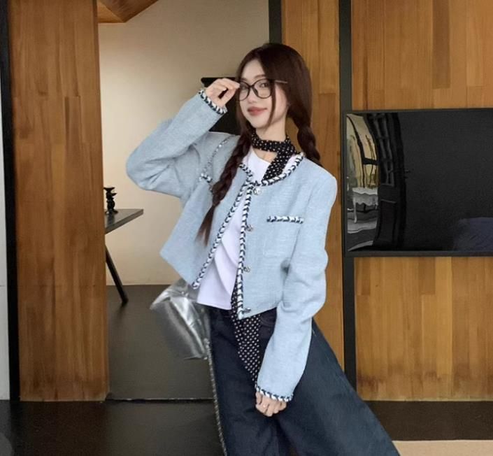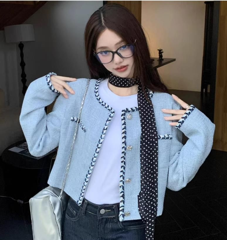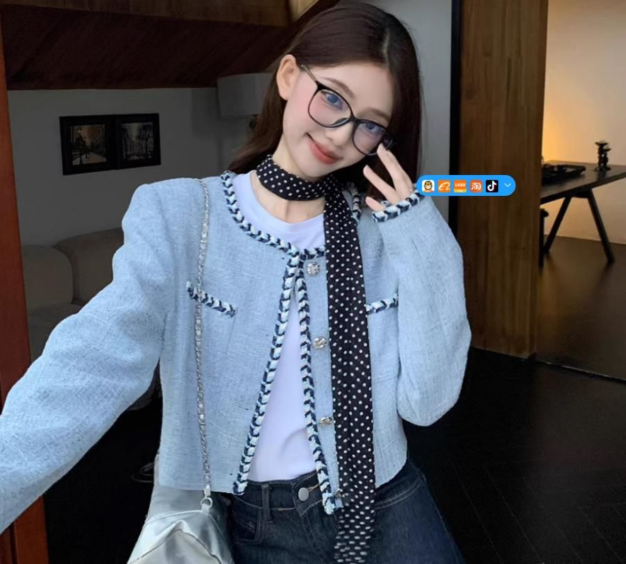FA44586# 小香风粗花呢短款长袖外套女秋季新款名媛气质设计感小众别致上衣 服裝批發女裝批發服飾貨源