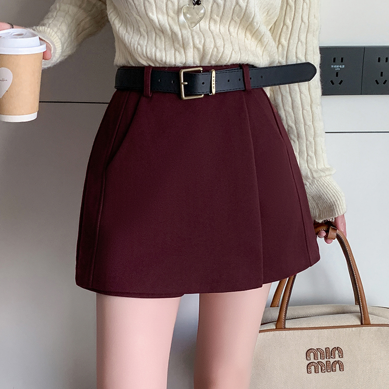 FA44592# 毛呢短裤裙女秋冬新款呢子a字裙裤高腰A字短裤靴裤女外穿 服裝批發女裝批發服飾貨源