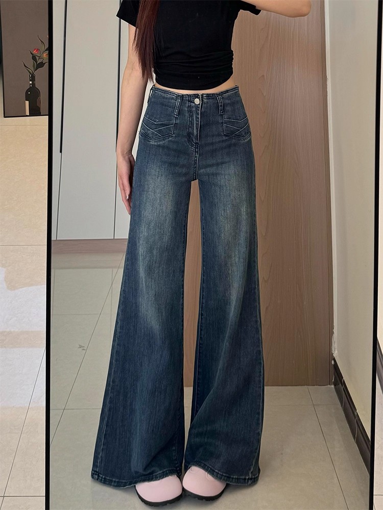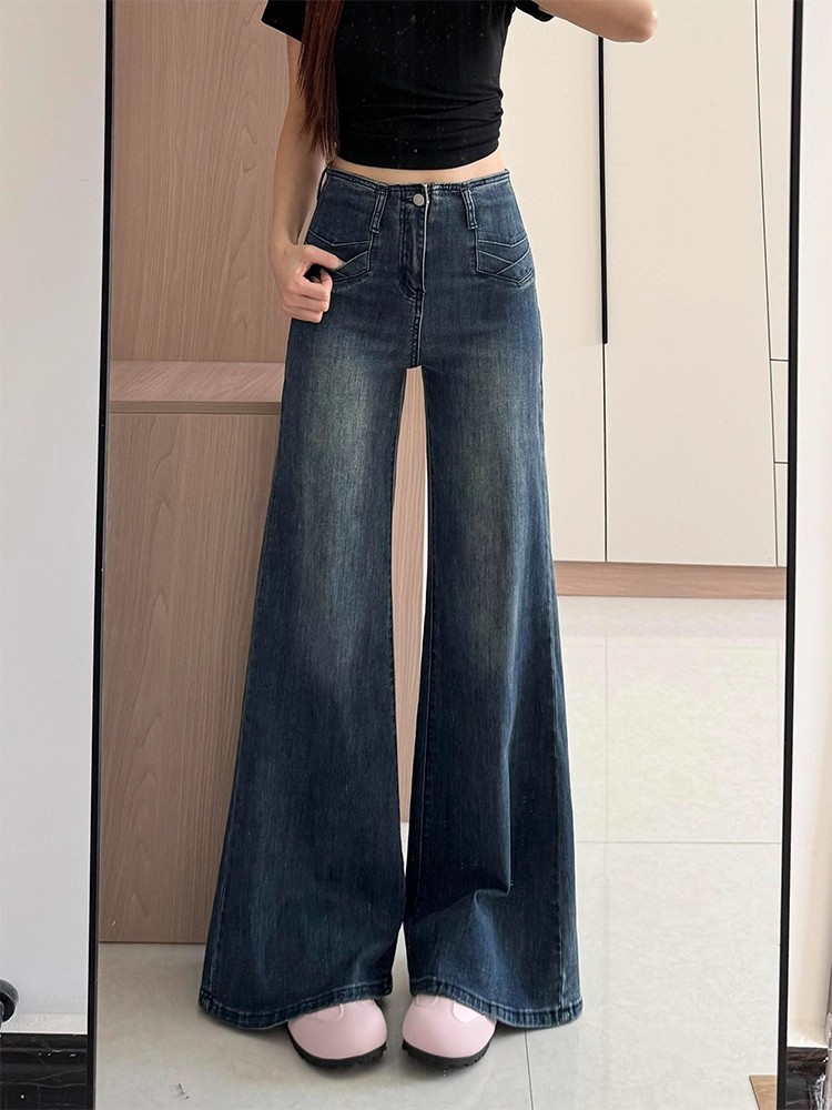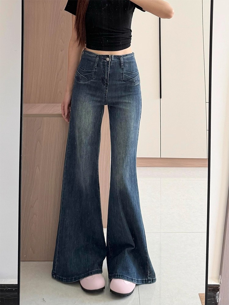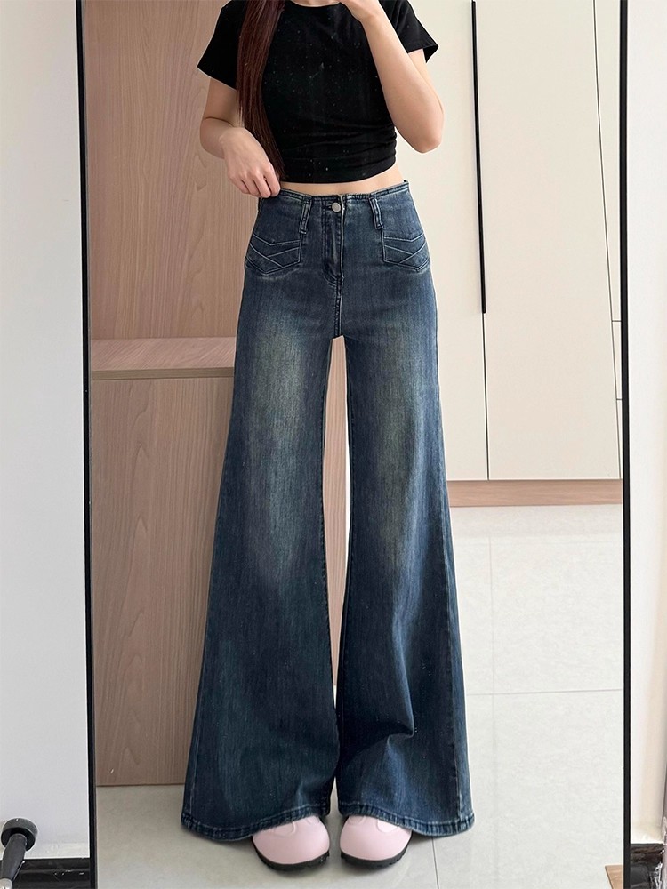 FA44607# 深色高腰不贴腿喇叭牛仔裤女秋季新款遮肉显瘦百搭裤 服裝批發女裝批發服飾貨源