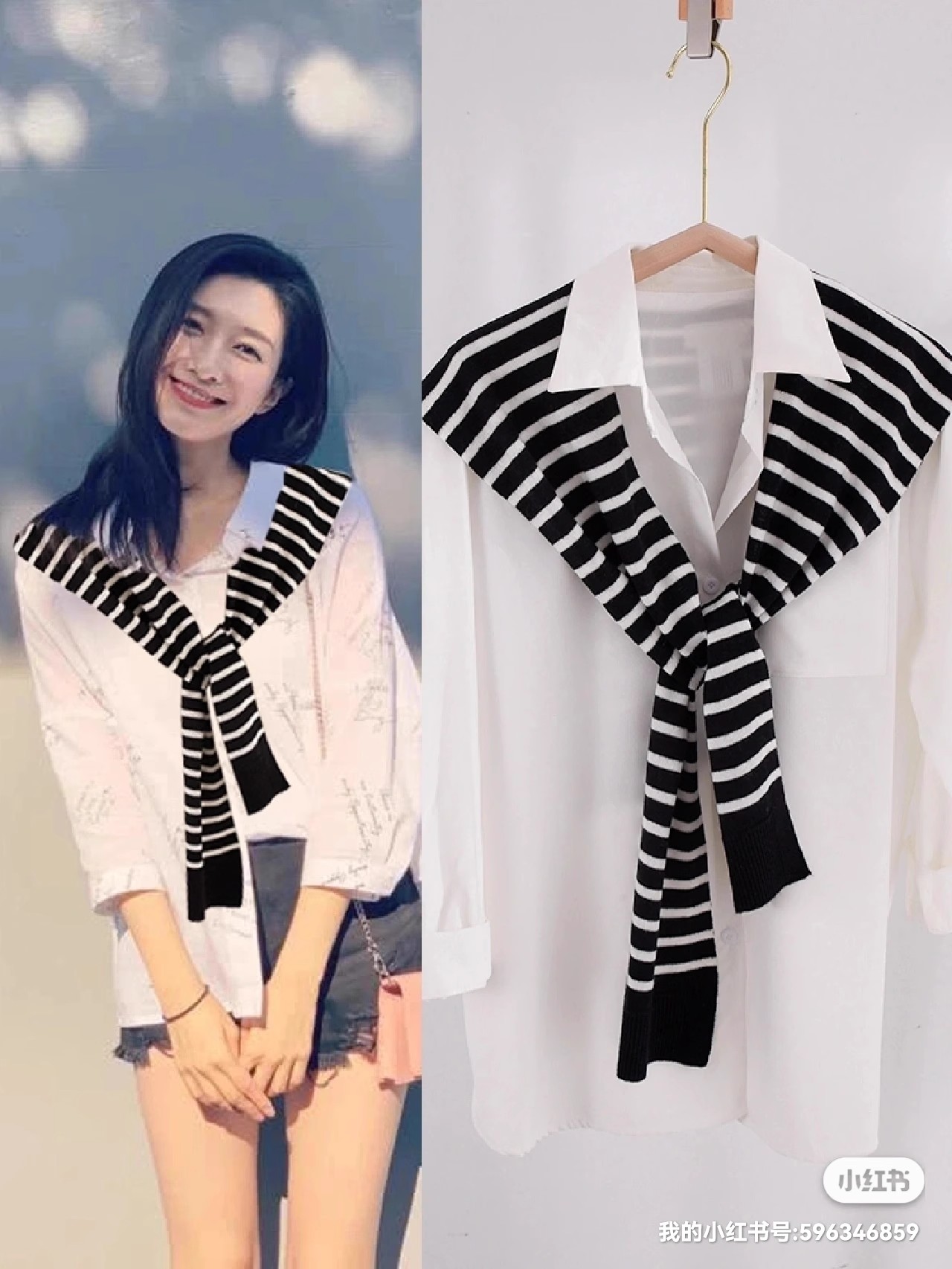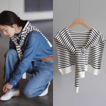 FA44623# 经典条纹外搭披肩女春秋百搭假领子装饰坎肩空调房搭肩多功能围巾 服裝批發女裝批發服飾貨源