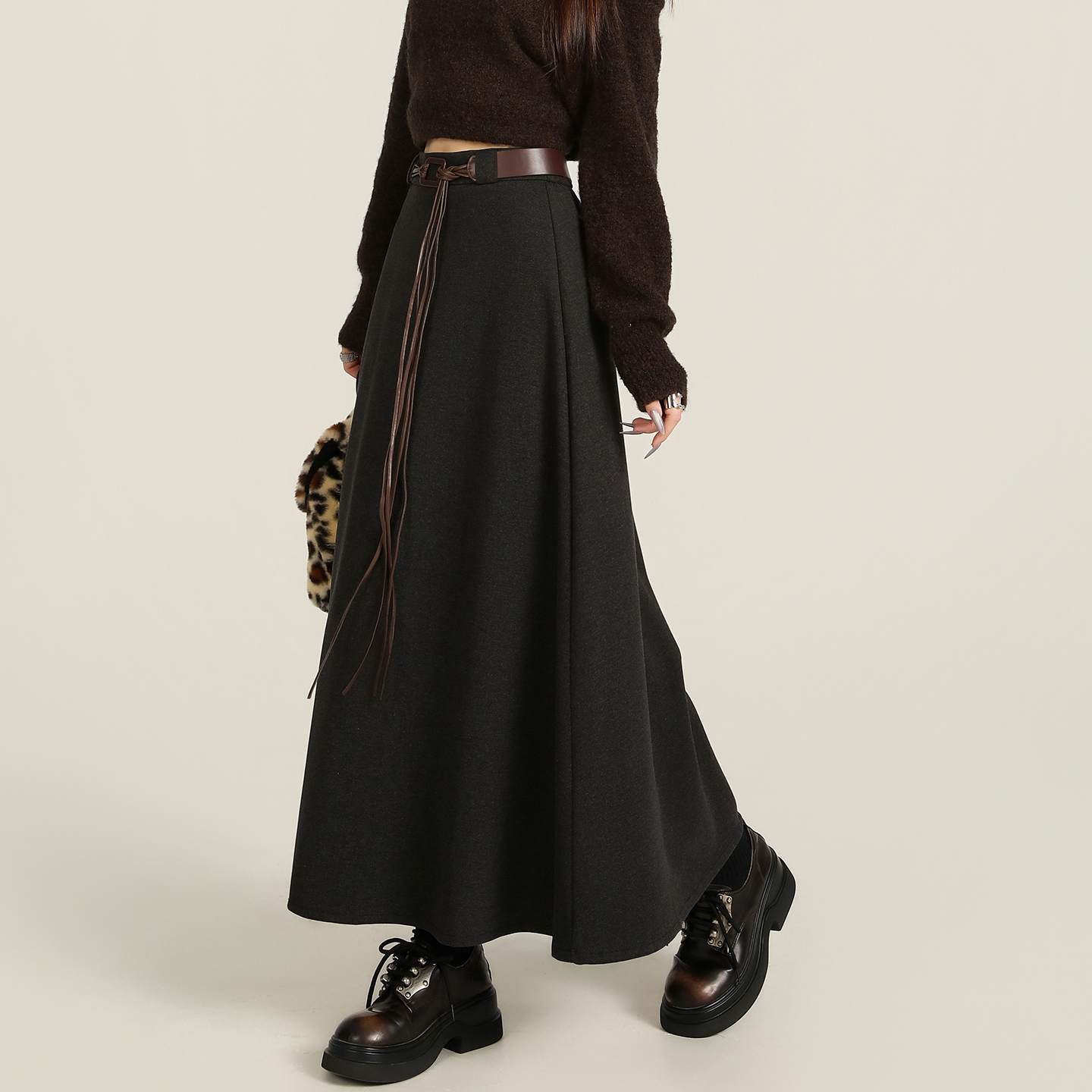 FA44635# 复古高腰半身裙女秋冬毛呢设计感胯大腿粗中长款遮肚子显瘦a字裙 服裝批發女裝批發服飾貨源