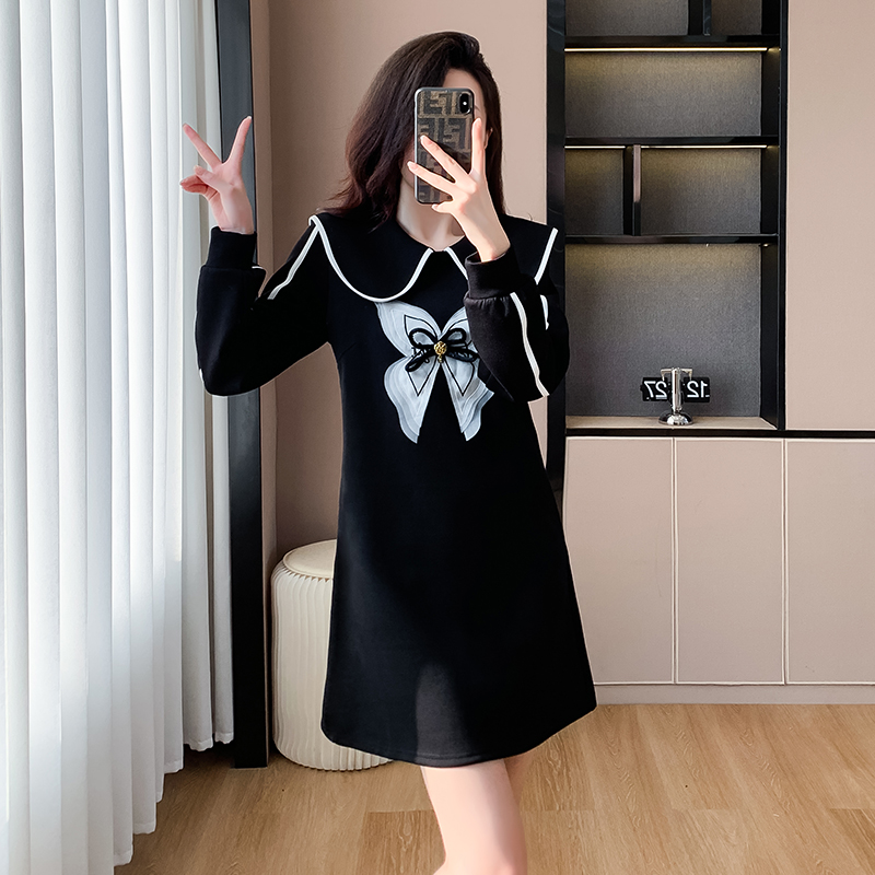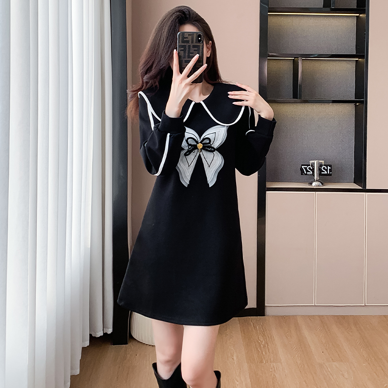 FA44701# 高端奢华设计感连衣裙秋冬宽松显瘦中长款法式百搭赫本小黑裙 服裝批發女裝批發服飾貨源