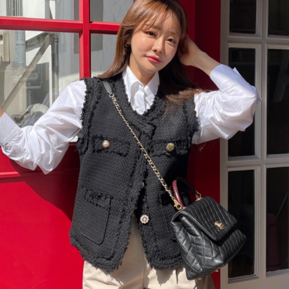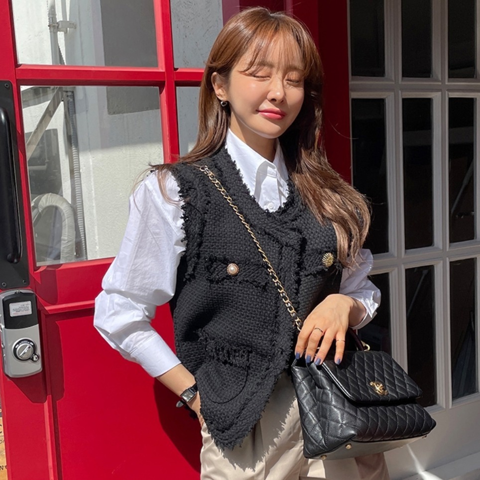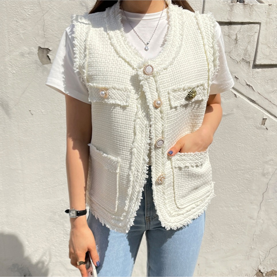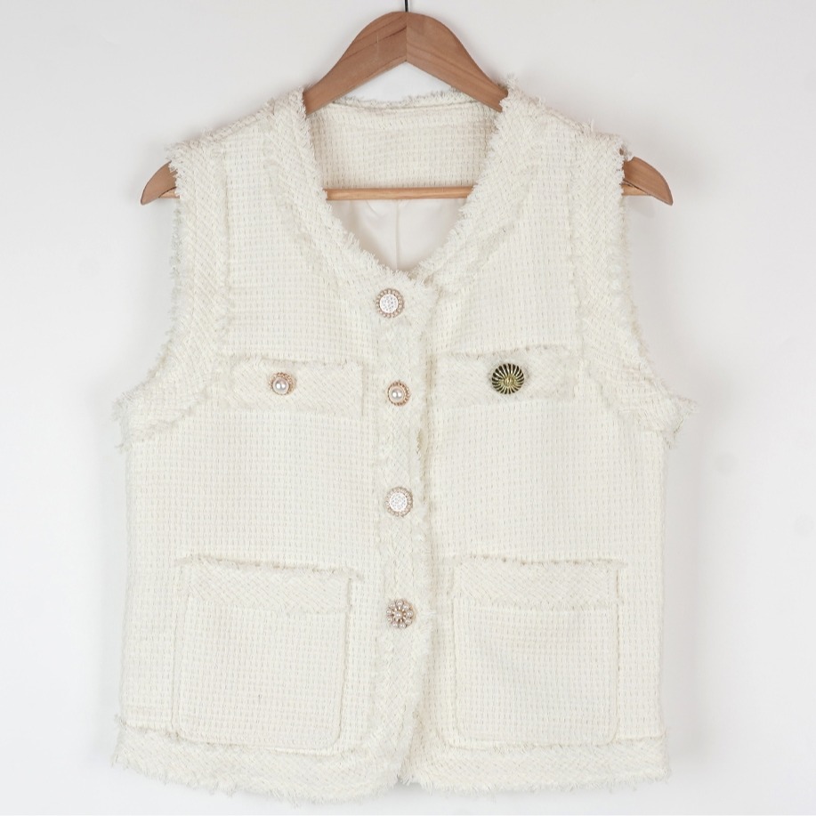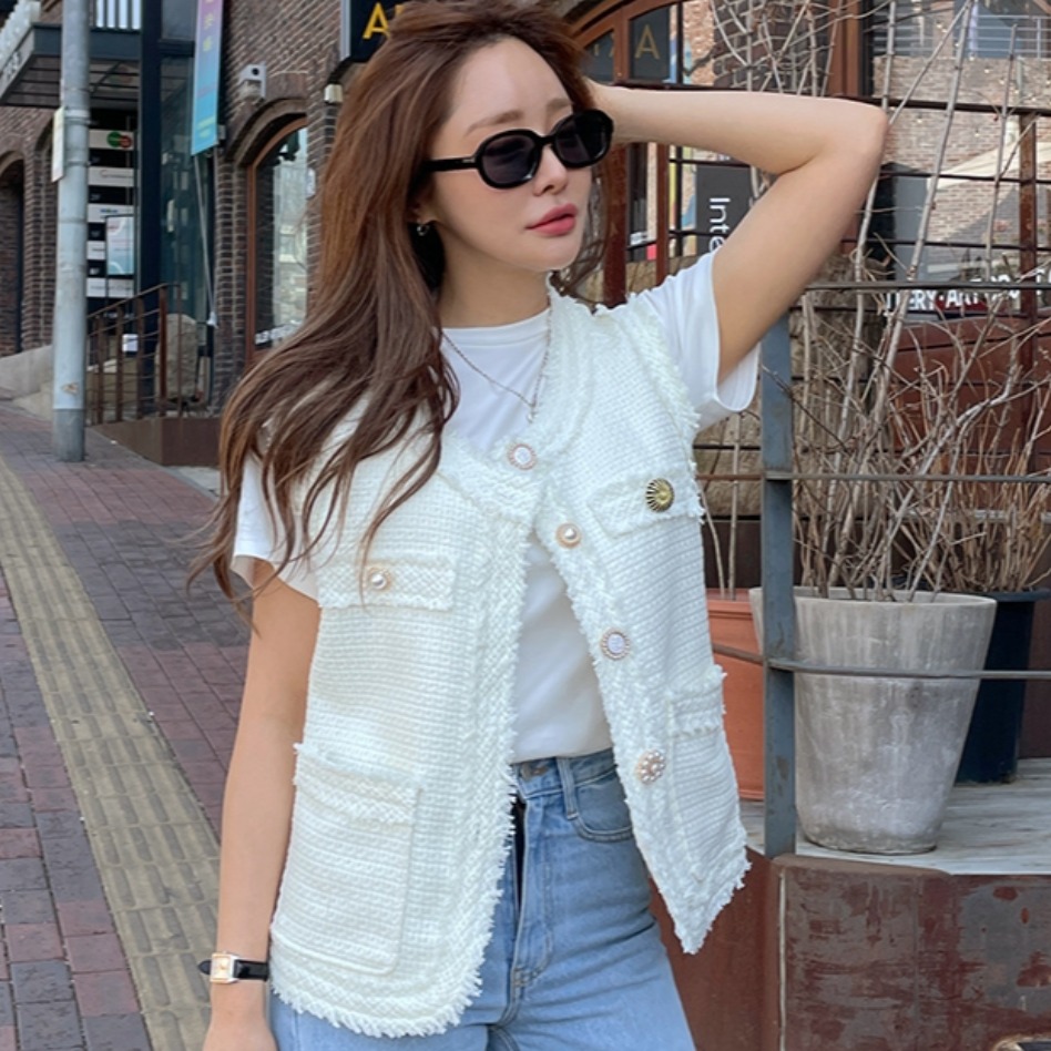 FA45321# 韩国法式气质百搭小香风粗花呢定制扣背心马甲外套上衣女 服裝批發女裝批發服飾貨源