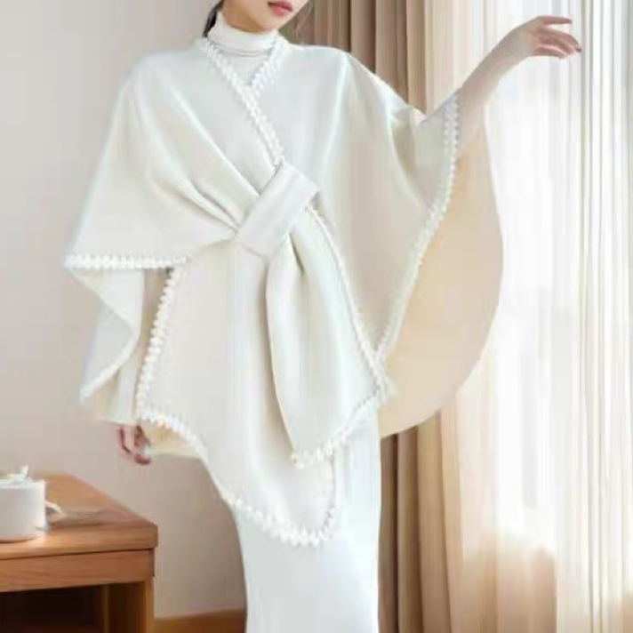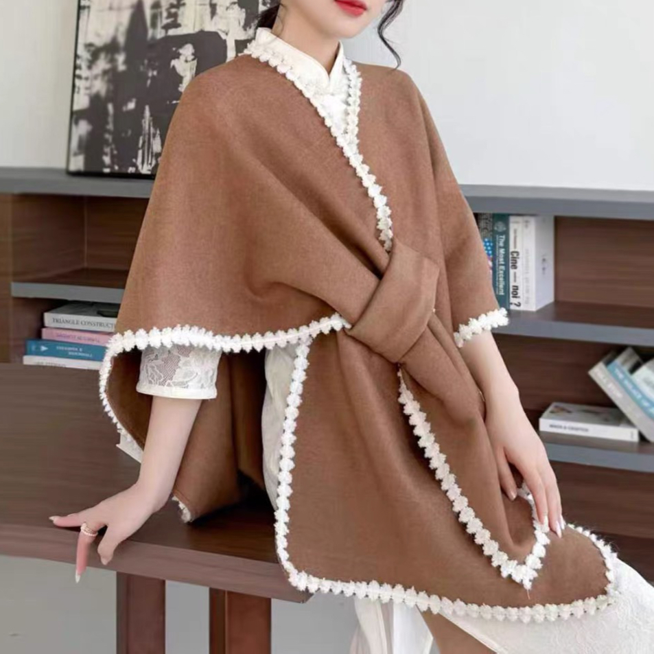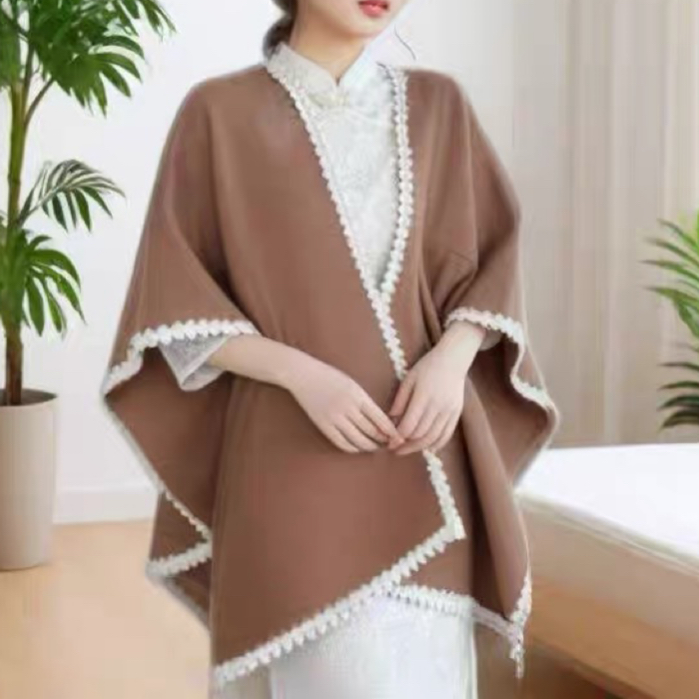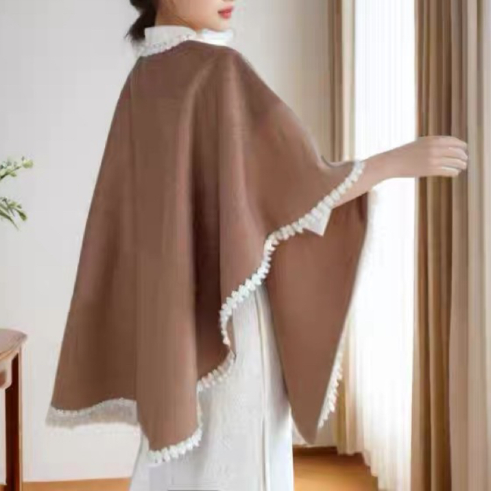FA45303# 秋冬斗篷披肩保暖百搭中长款开衫旗袍外搭披风围巾厚羊绒 服裝批發女裝批發服飾貨源