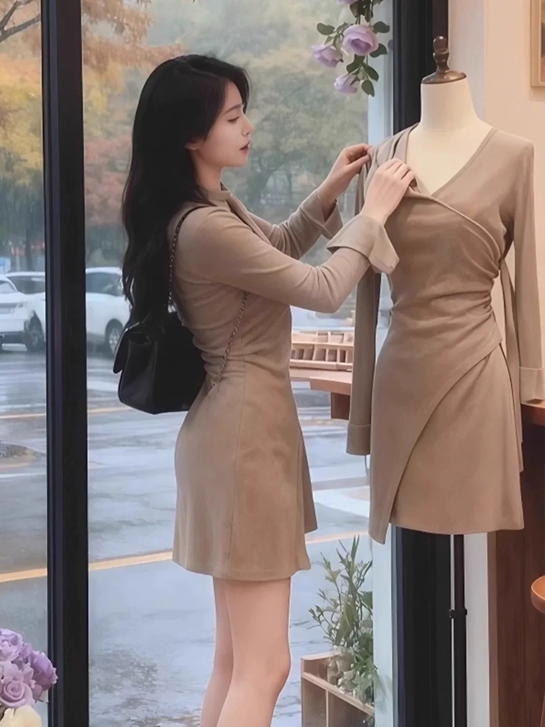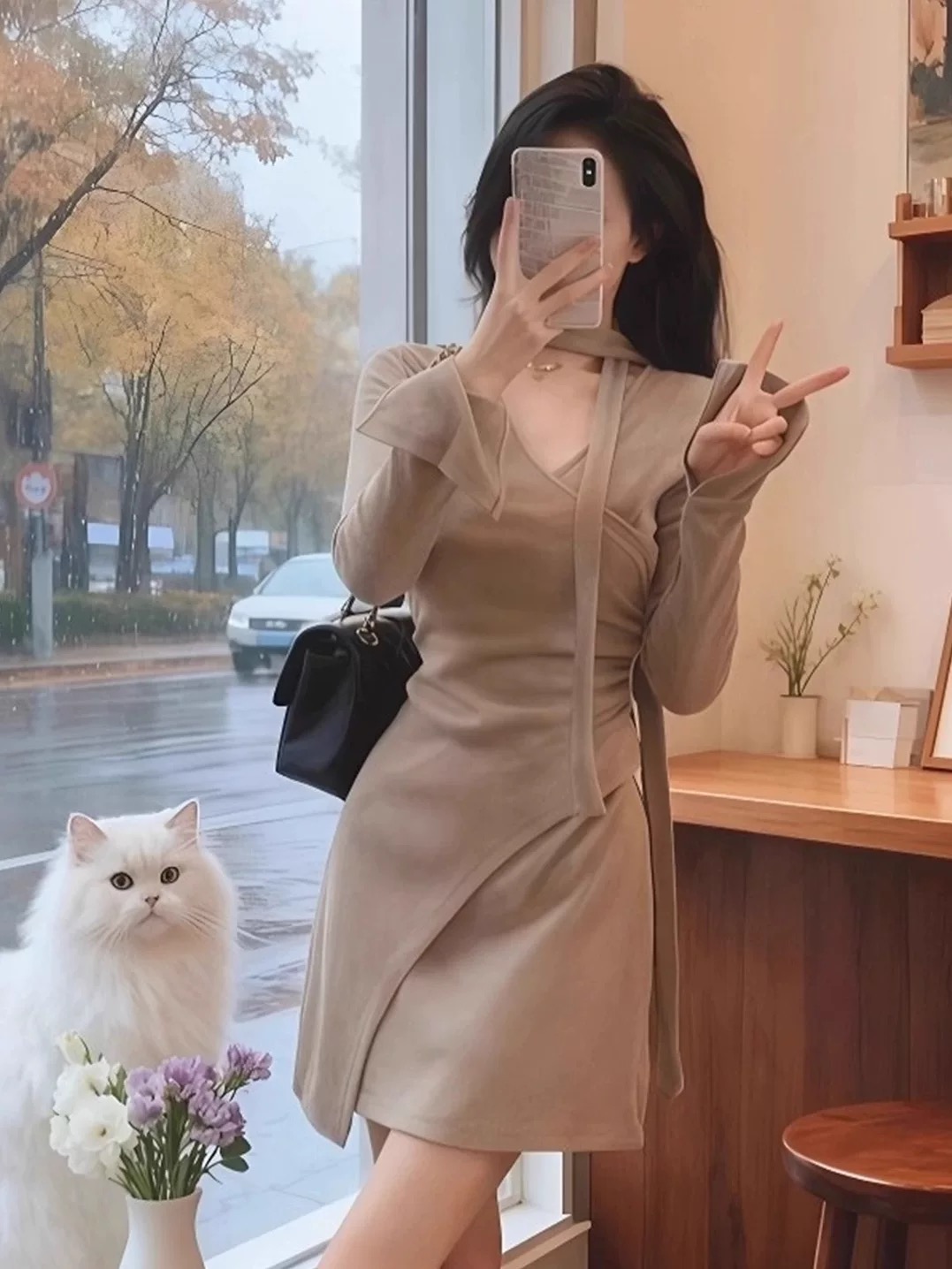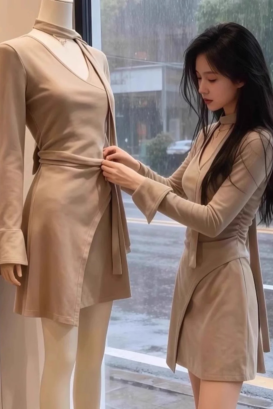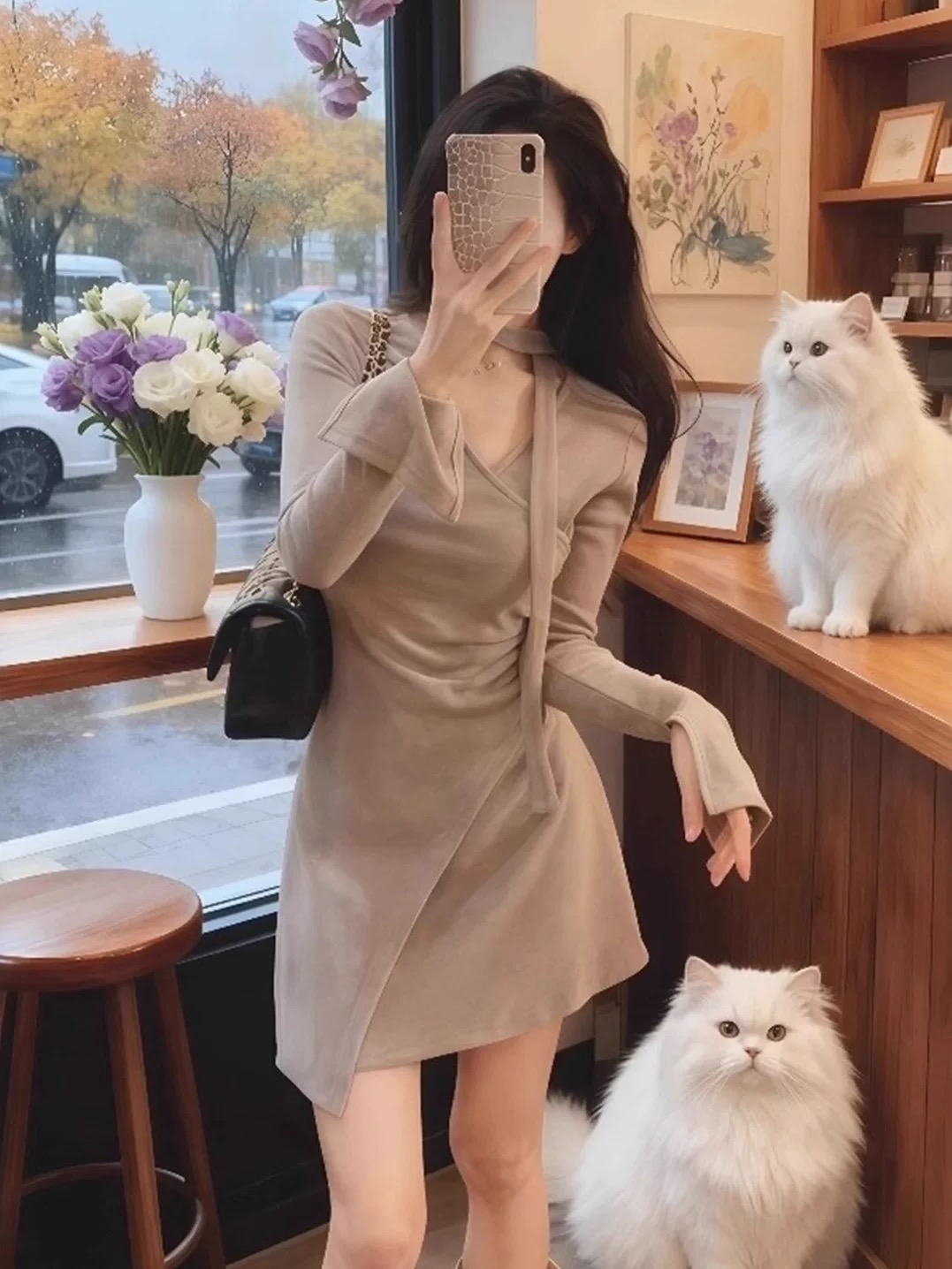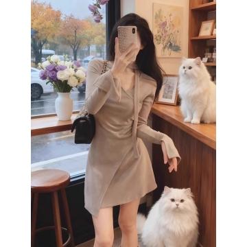 FA45434# 法式轻熟风V领收腰连衣裙今年流行的爆款女装秋季新款气质短裙潮 服裝批發女裝批發服飾貨源