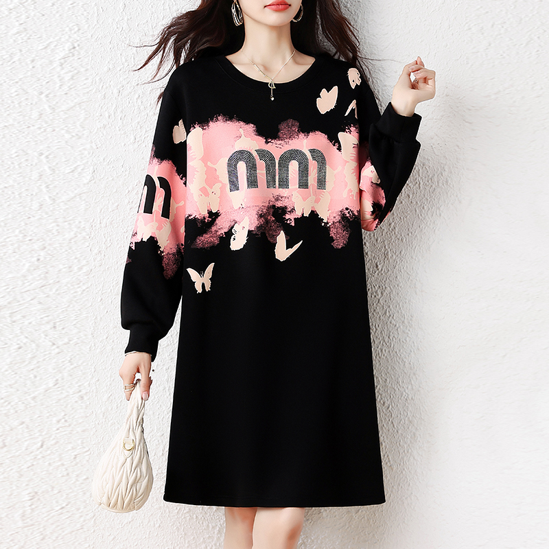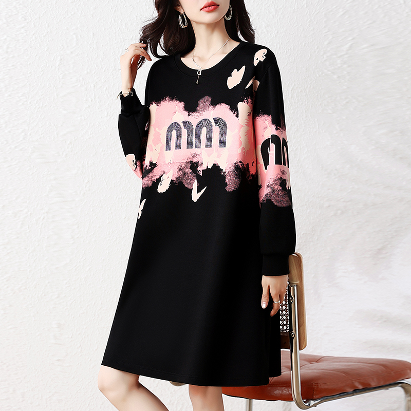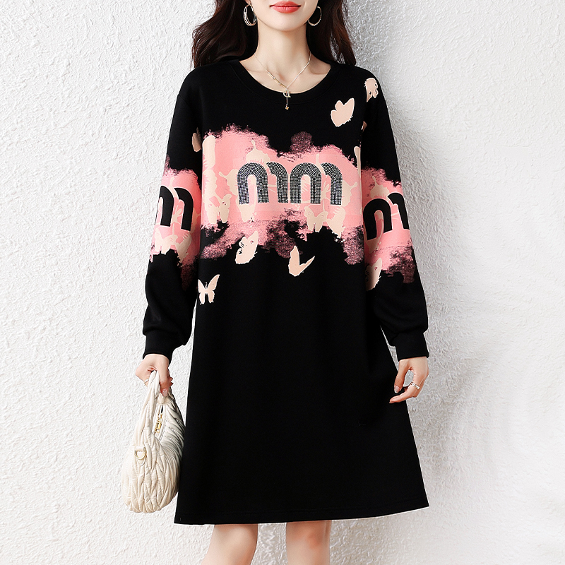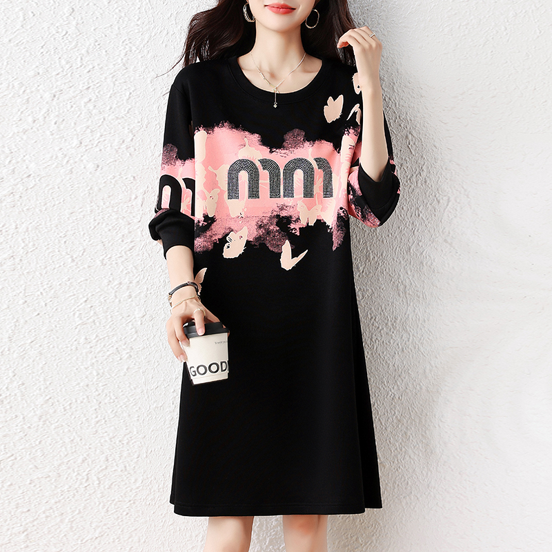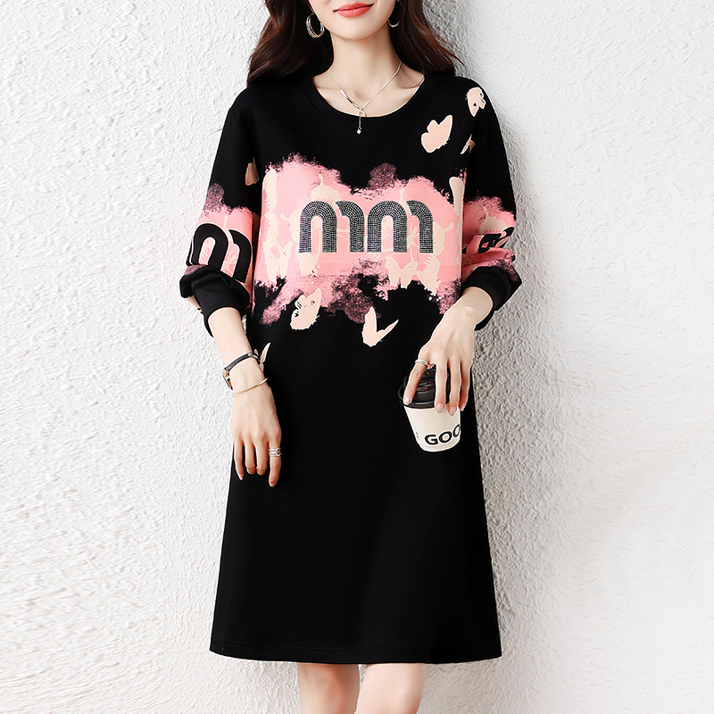 Home > 夜店裙、长袖连衣裙 > FA45729# 秋冬新款韩版时尚洋气胖mm印花重工烫钻显瘦遮肉连衣裙女 服裝批發女裝批發服飾貨源