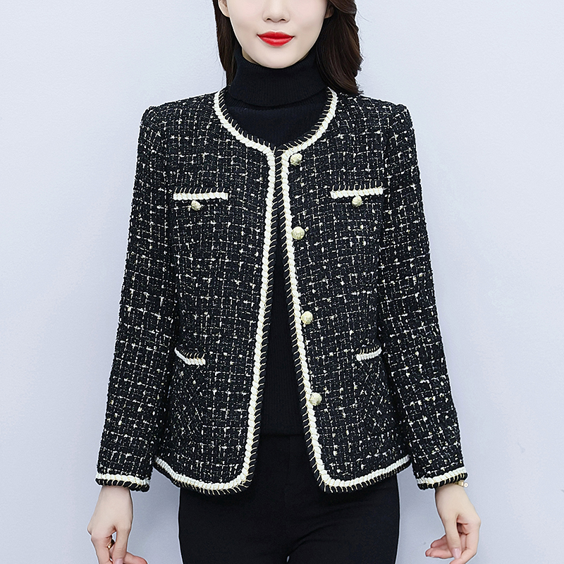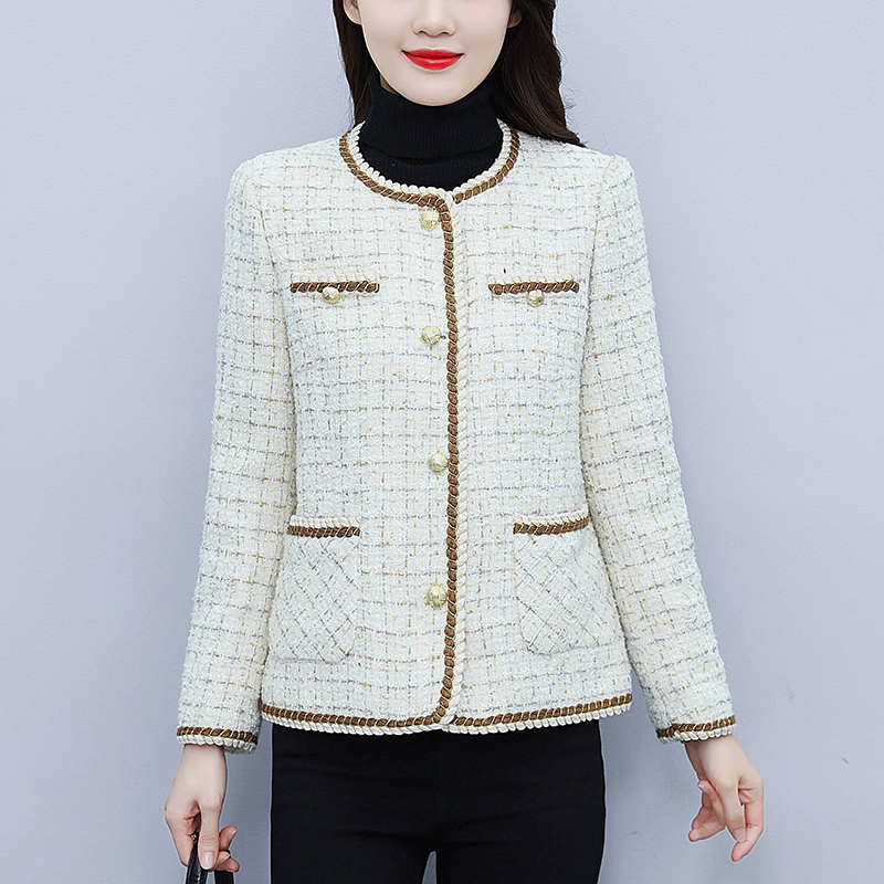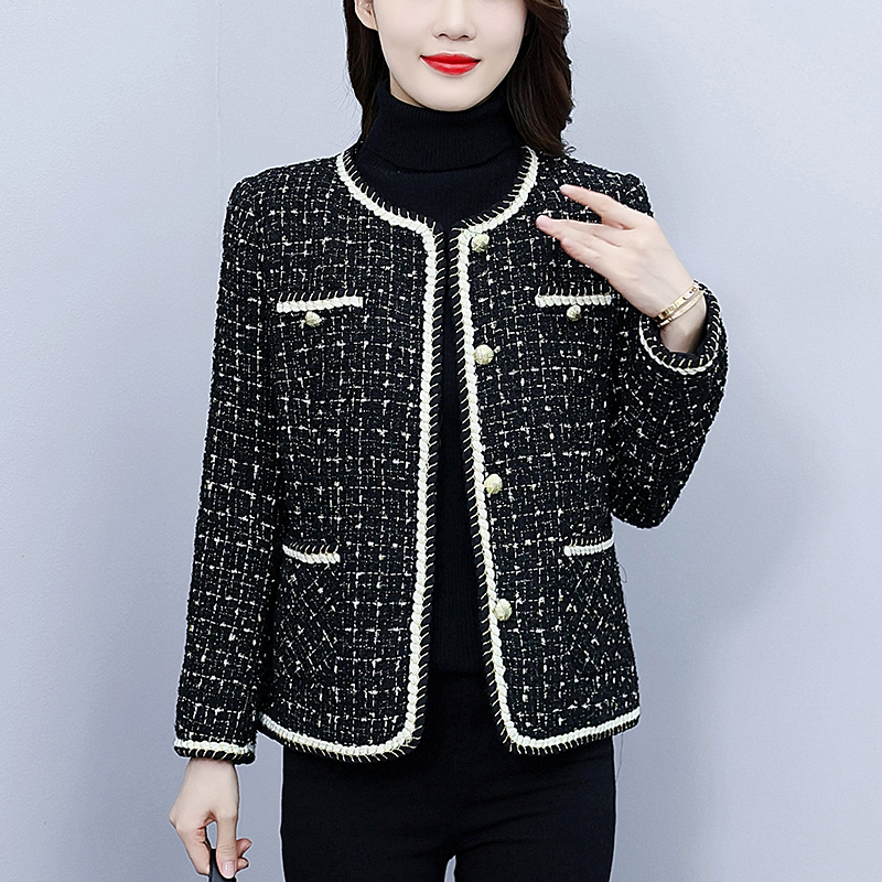 FA45731# 小香风毛呢外套女秋冬新款粗花呢子短款圆领显瘦百搭上衣 服裝批發女裝批發服飾貨源