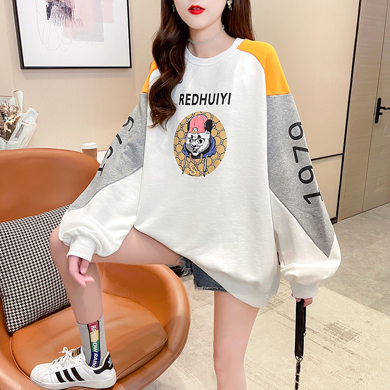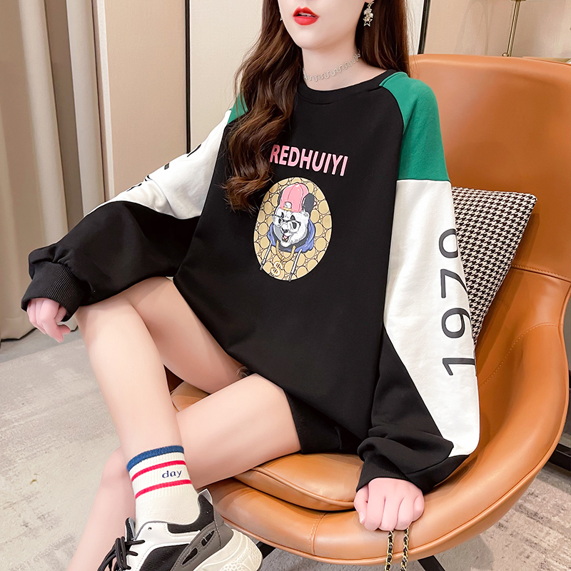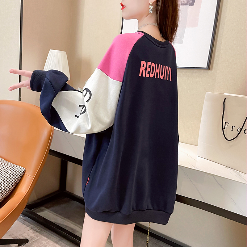 FA46565# 秋韩版新款宽松大码圆领撞色拼接卫衣女