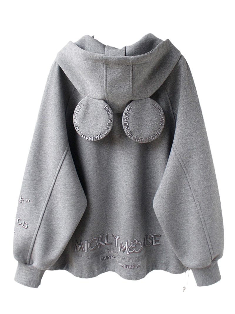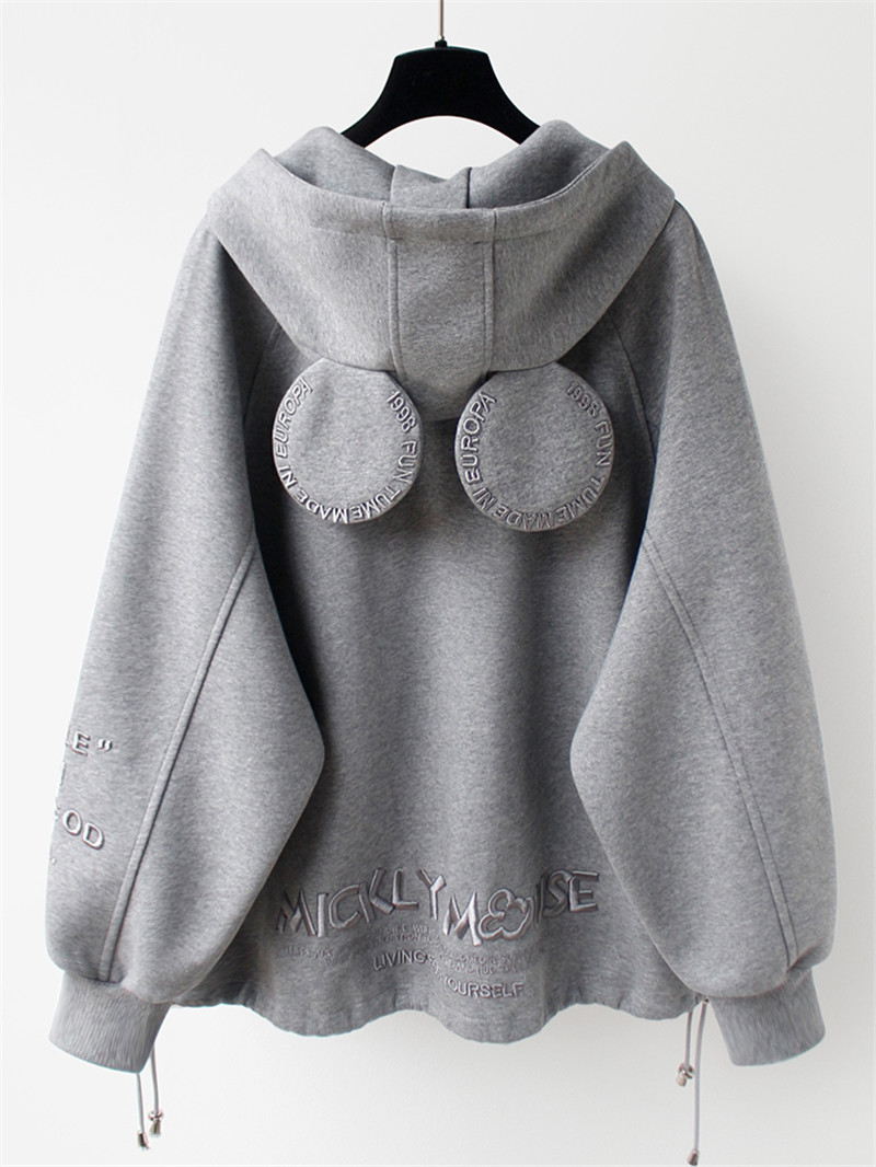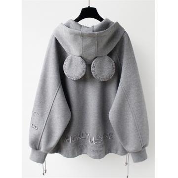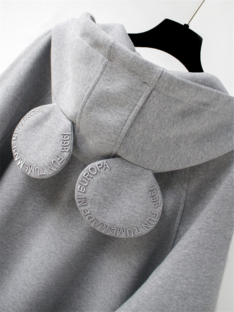 FA46624# 华棉复贝贝绒秋冬新款加绒加厚连帽开衫女卫衣宽松中长款上衣外套