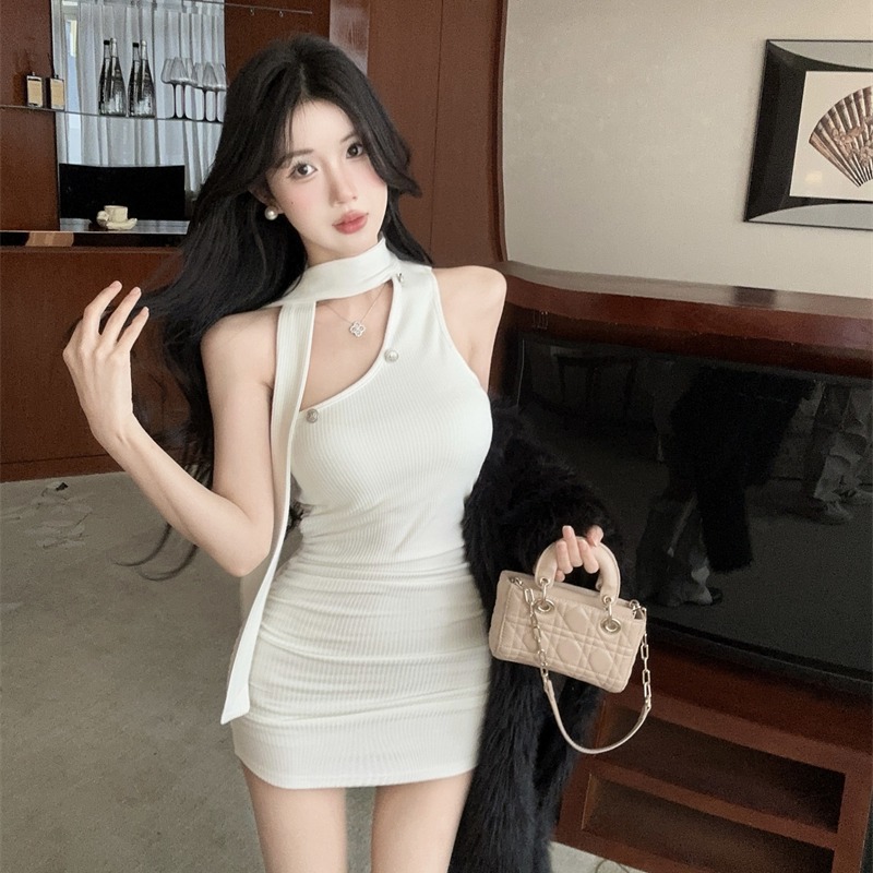 FA46692# 纯欲性感围脖修身连衣裙自带胸垫内搭裙子 服裝批發女裝批發服飾貨源