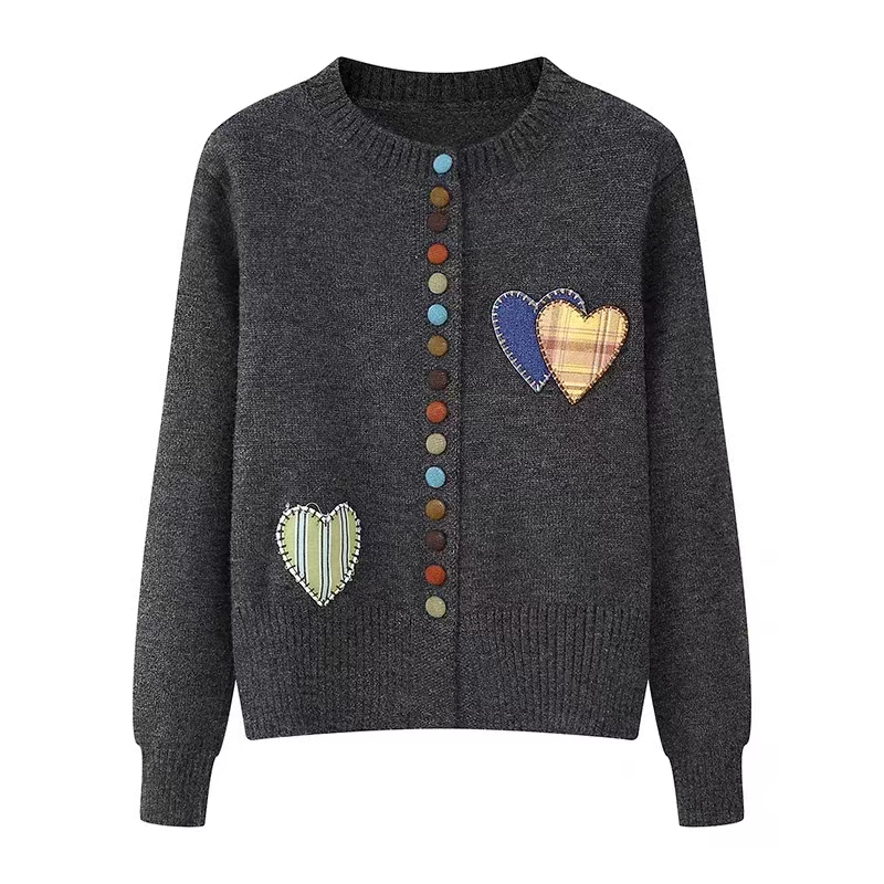 FA47526# 欧货气质爱心彩扣针织衫女秋冬时髦设计羊绒毛衣洋气独特漂亮小衫 服裝批發女裝批發服飾貨源