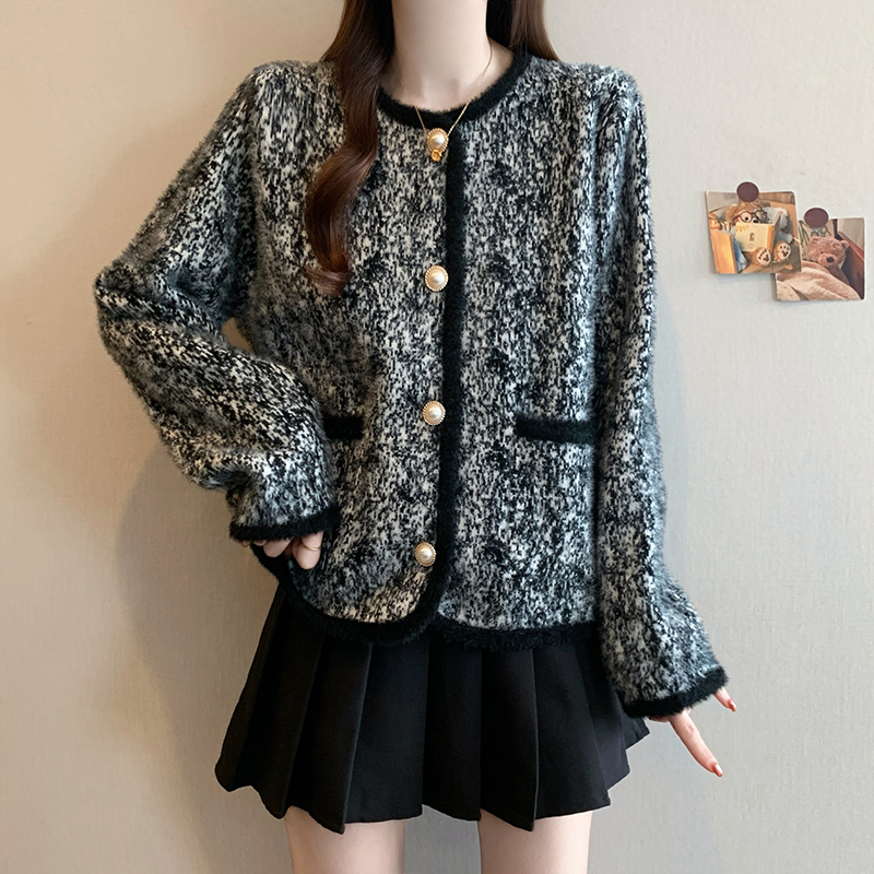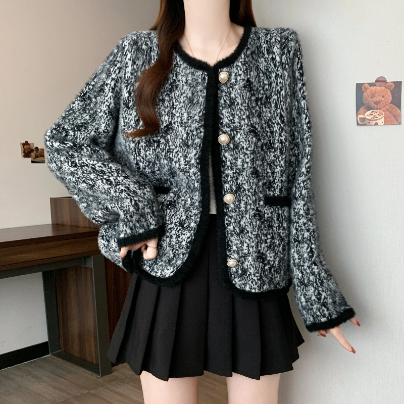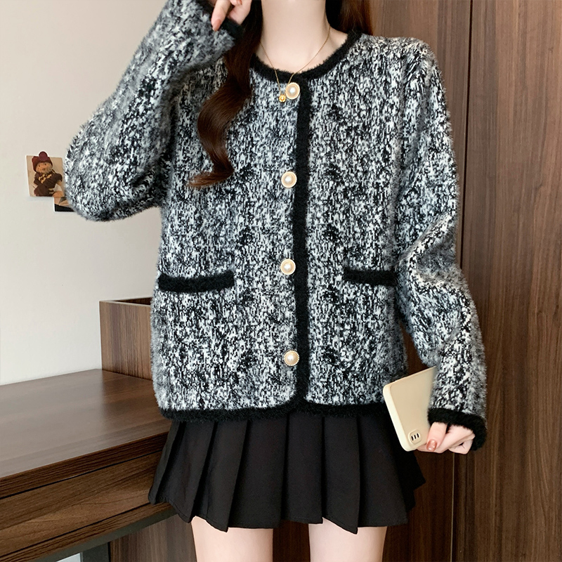 FA47546# 冬季新款大码时尚小香风圆领百搭仿水貂绒加厚针织外套 服裝批發女裝批發服飾貨源