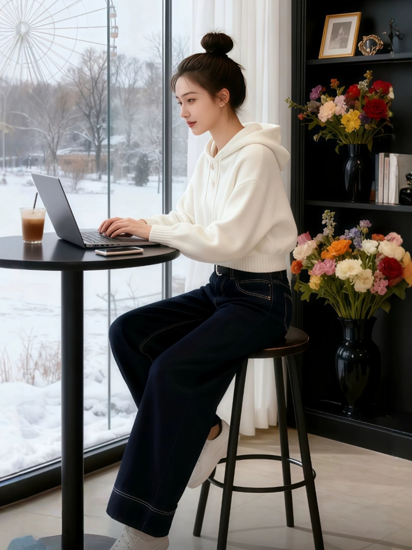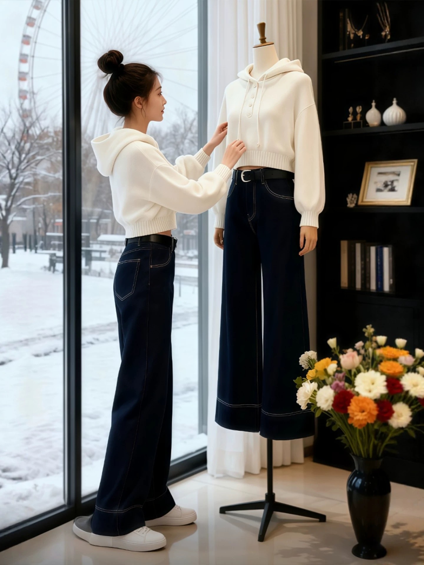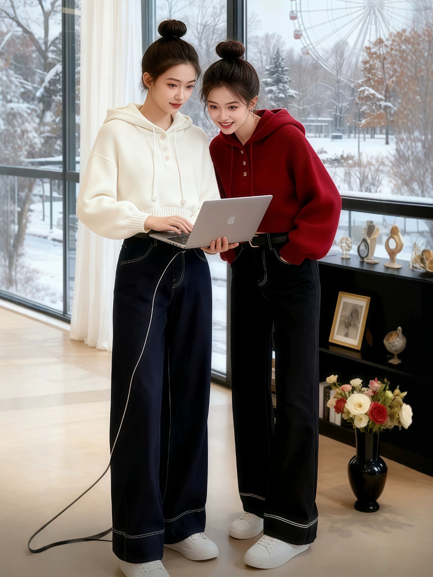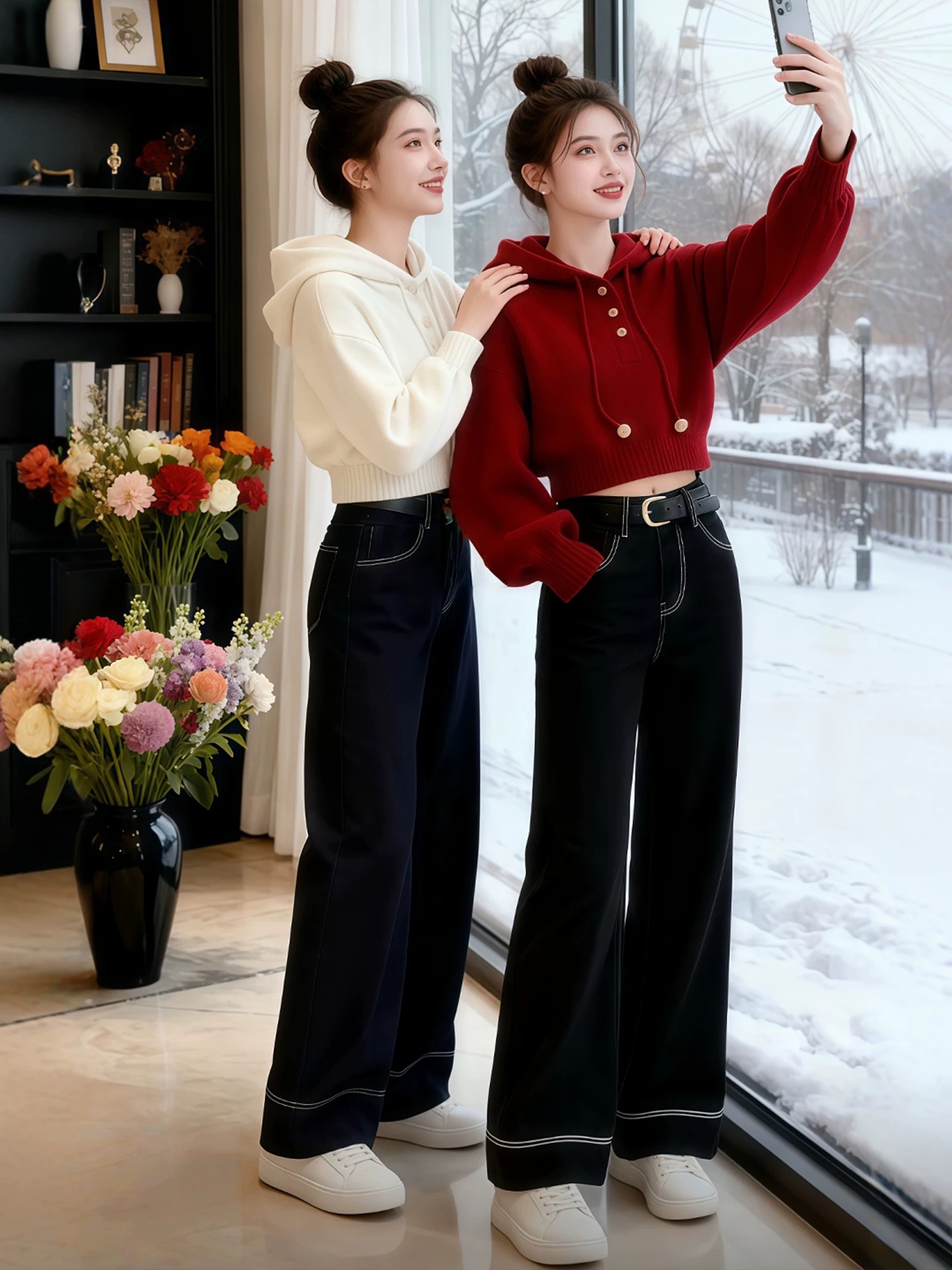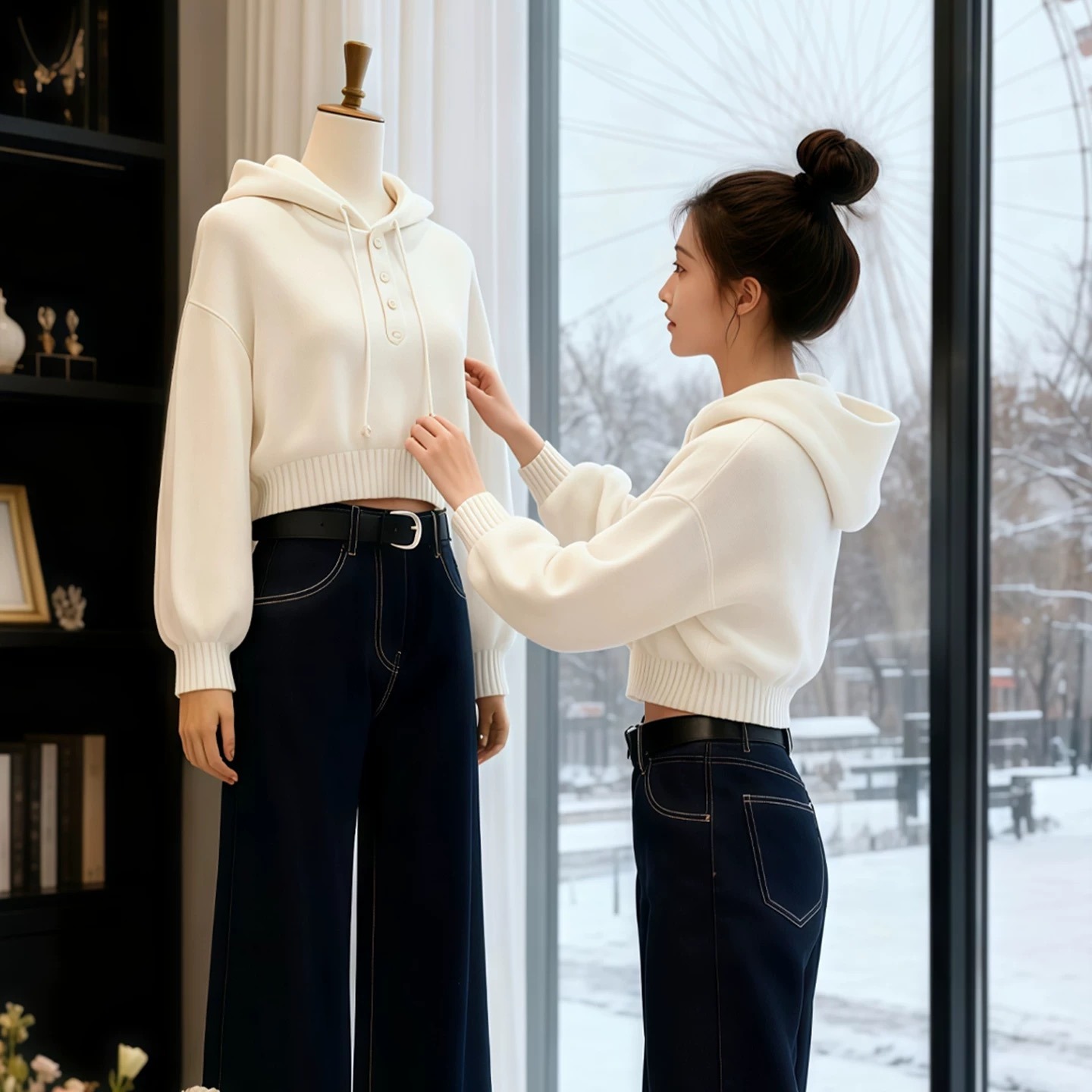FA47712# 白色半开领短款连帽针织衫女秋冬季新款氛围感绝美巨好看上衣 服裝批發女裝批發服飾貨源