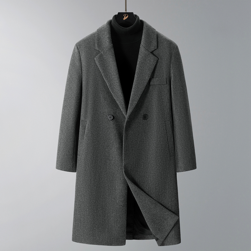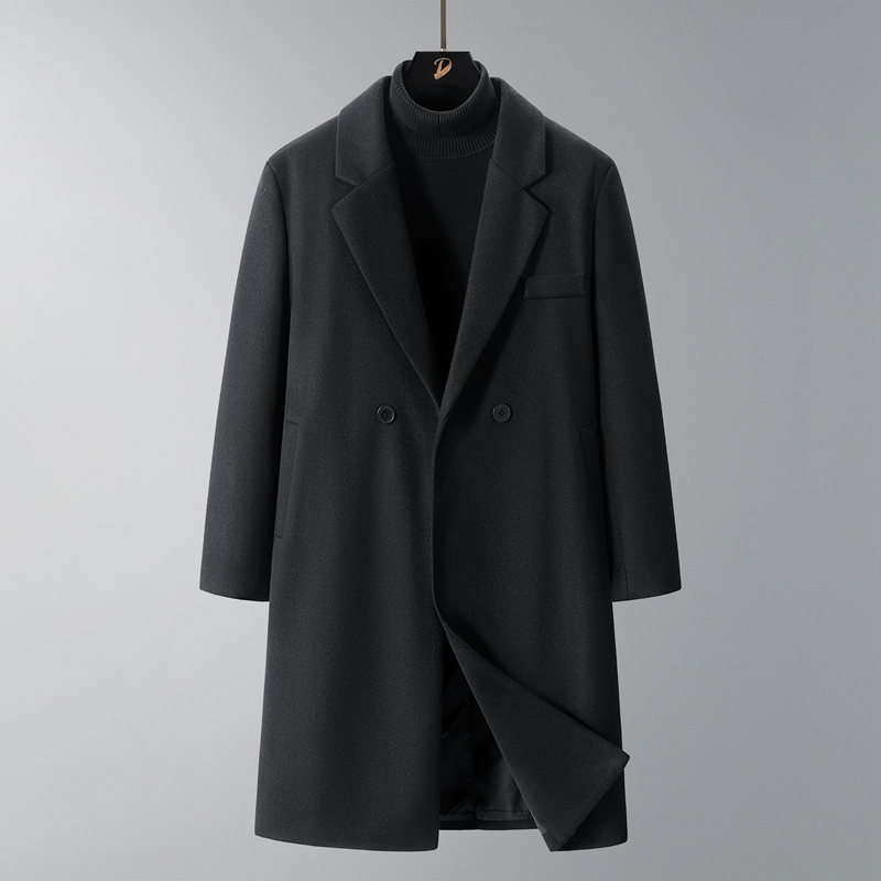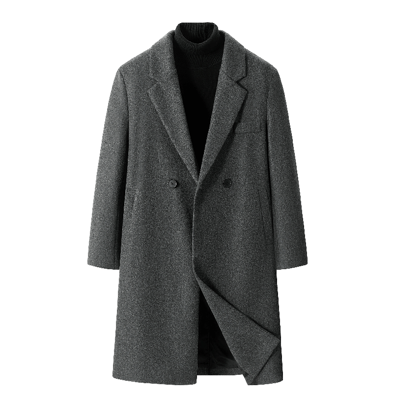 过膝中长款毛呢大衣男新款休闲宽松高级毛呢中长款风衣青少年韩版潮流大码潮牌呢子外套男 男装批发