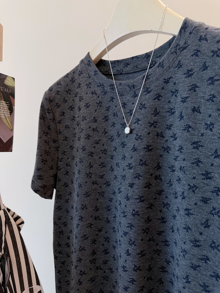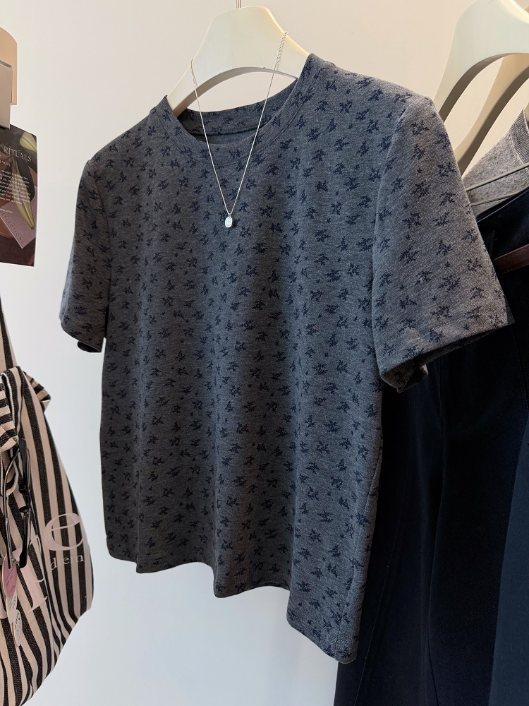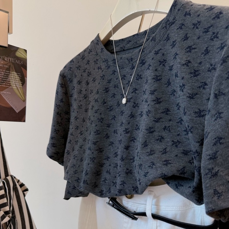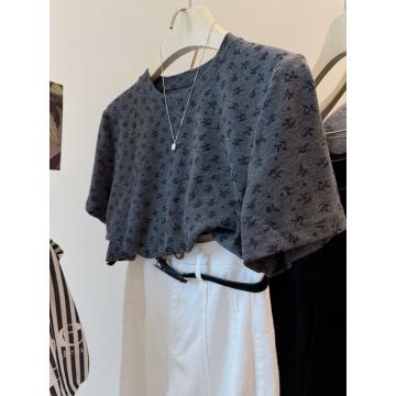 FA51847# 德绒大码300斤满印兰花草韩系减龄磨毛感短款显瘦t恤女宽松上衣秋 服裝批發女裝批發服飾貨源