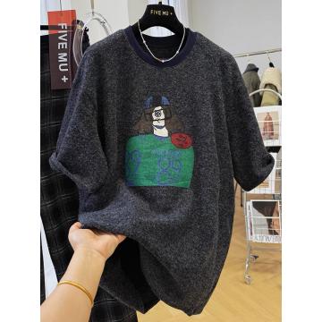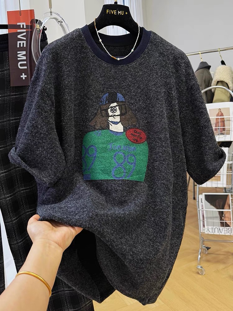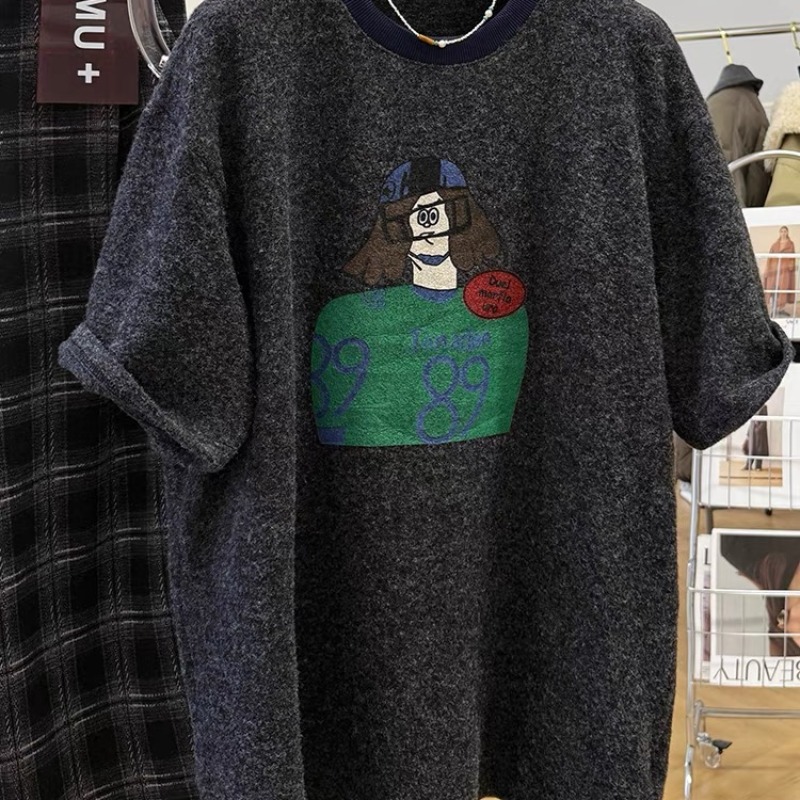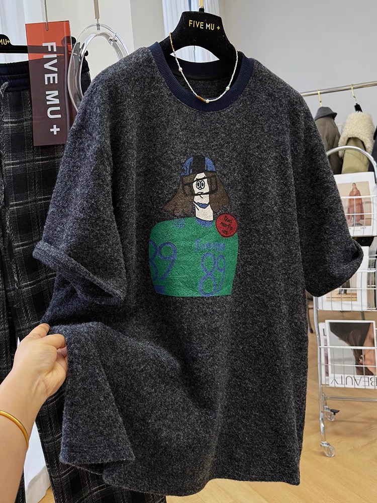 FA51851# 原版质量特大码300斤宽松卡通磨毛圆领短袖T恤女装春季打底衫上衣 服裝批發女裝批發服飾貨源
