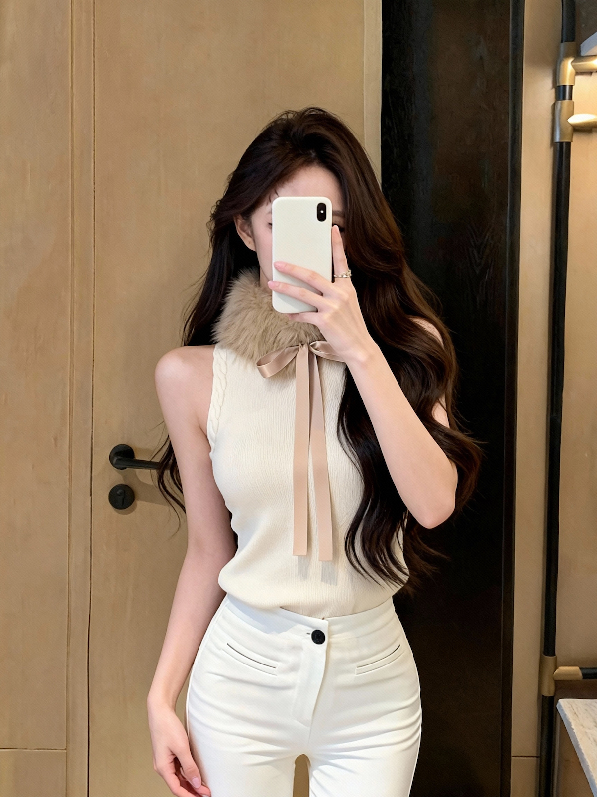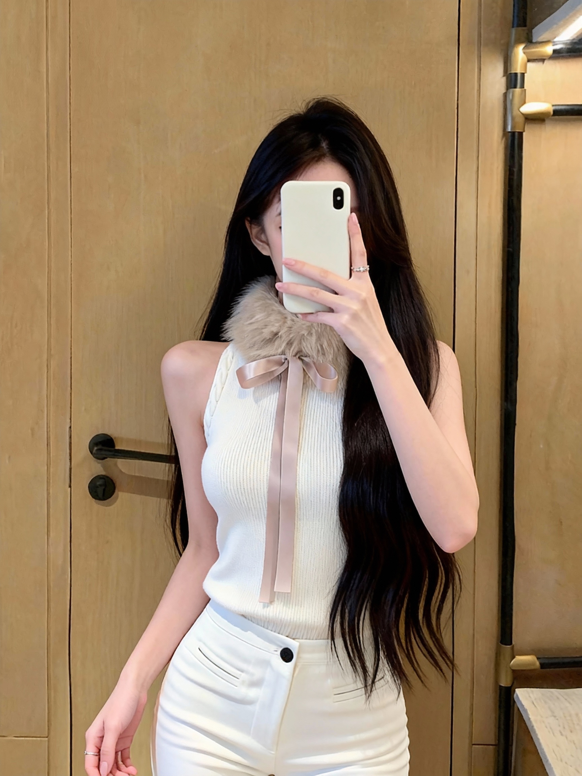 FA51926# 毛毛围脖挂脖针织背心上衣冬可拆卸毛领 服裝批發女裝批發服飾貨源