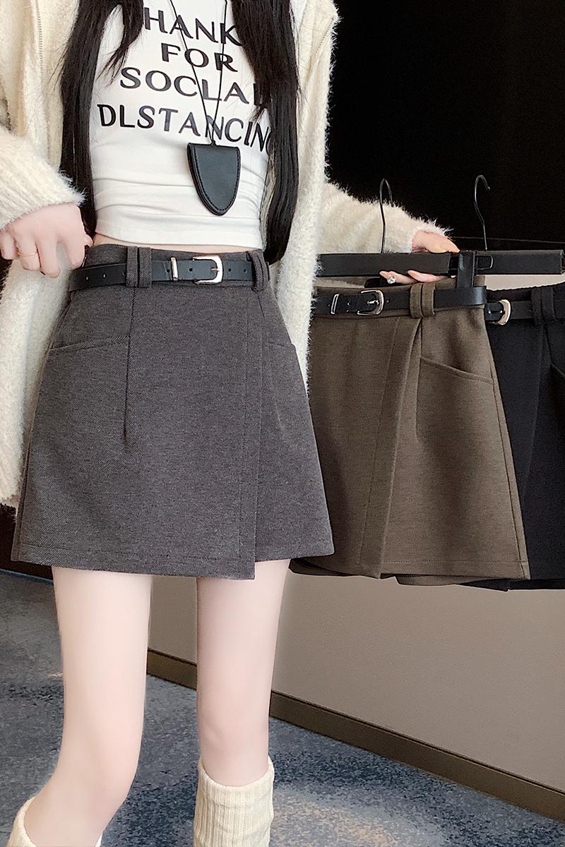 FA51937# 灰色厚毛呢料短裙裤女秋冬外穿小个子a字靴裤新款不规则短裤 服裝批發女裝批發服飾貨源