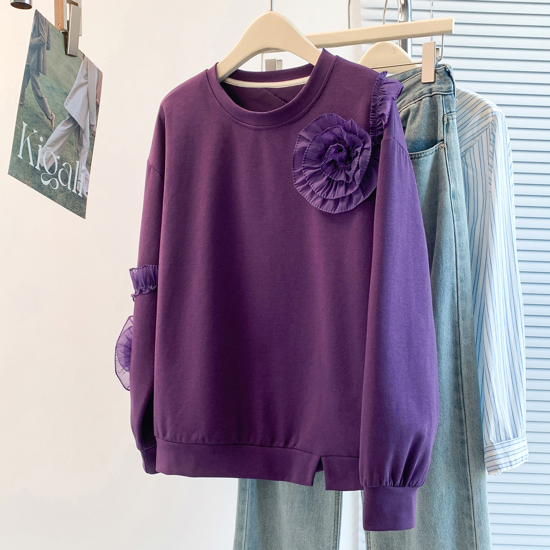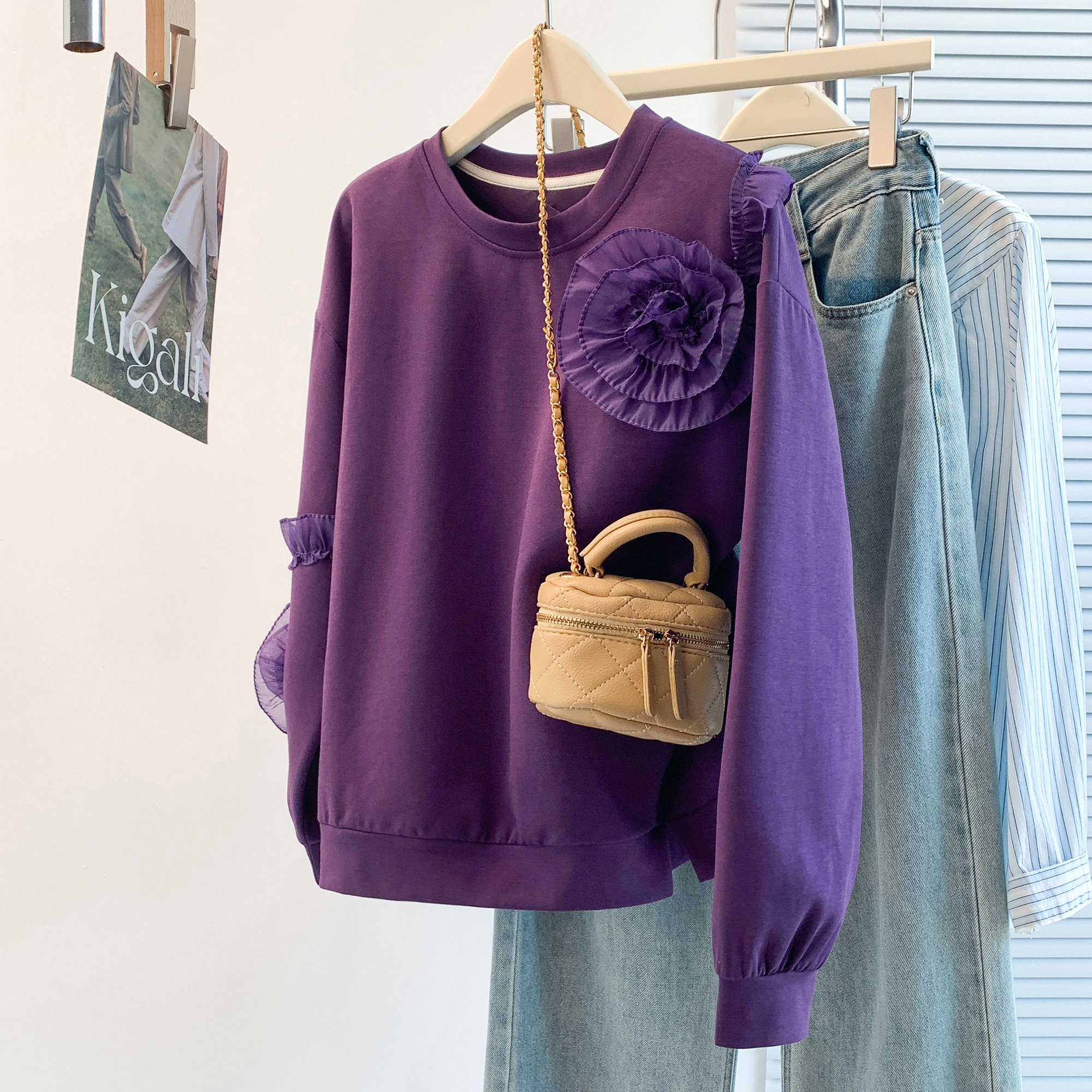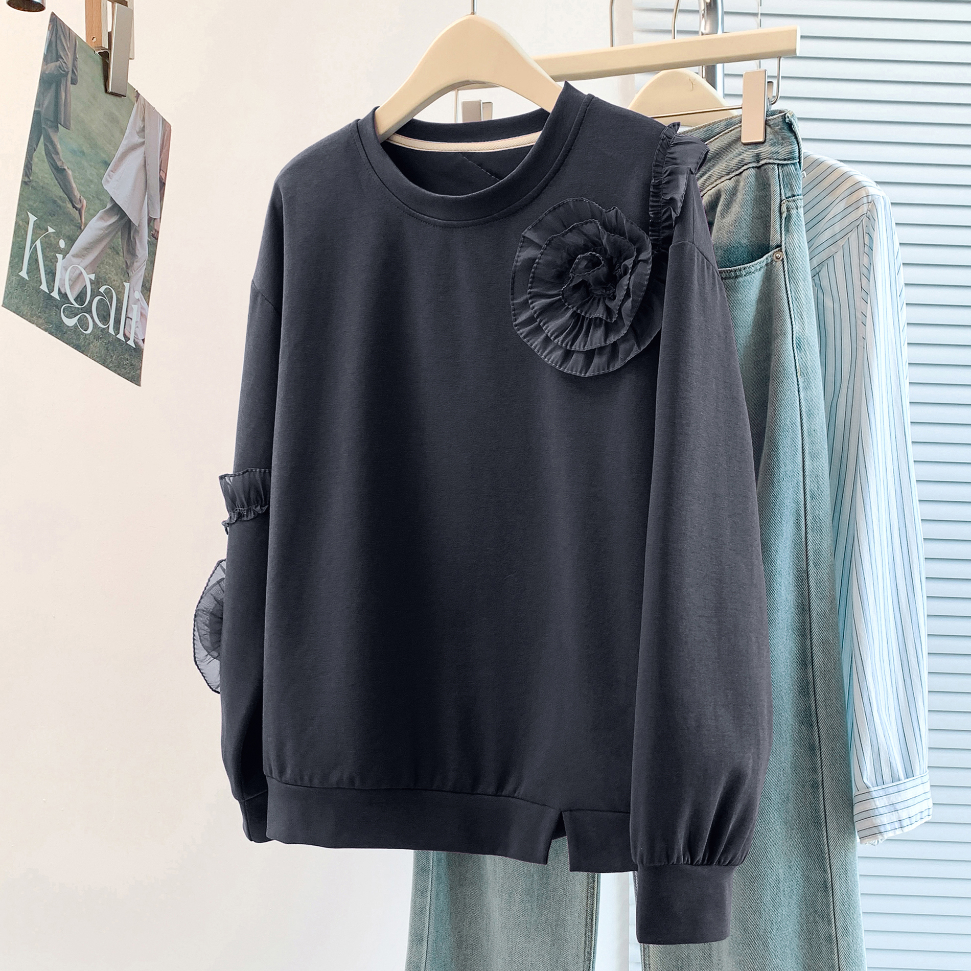 FA52112# 秋冬新款洋气减龄设计感重工花边个性潮流T恤气质百搭卫衣女 服裝批發女裝批發服飾貨源