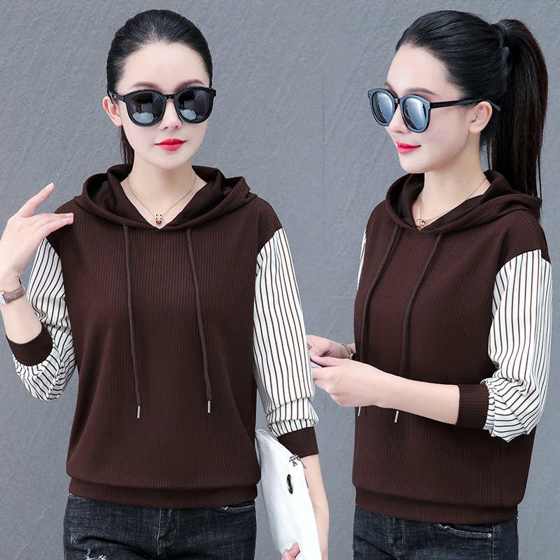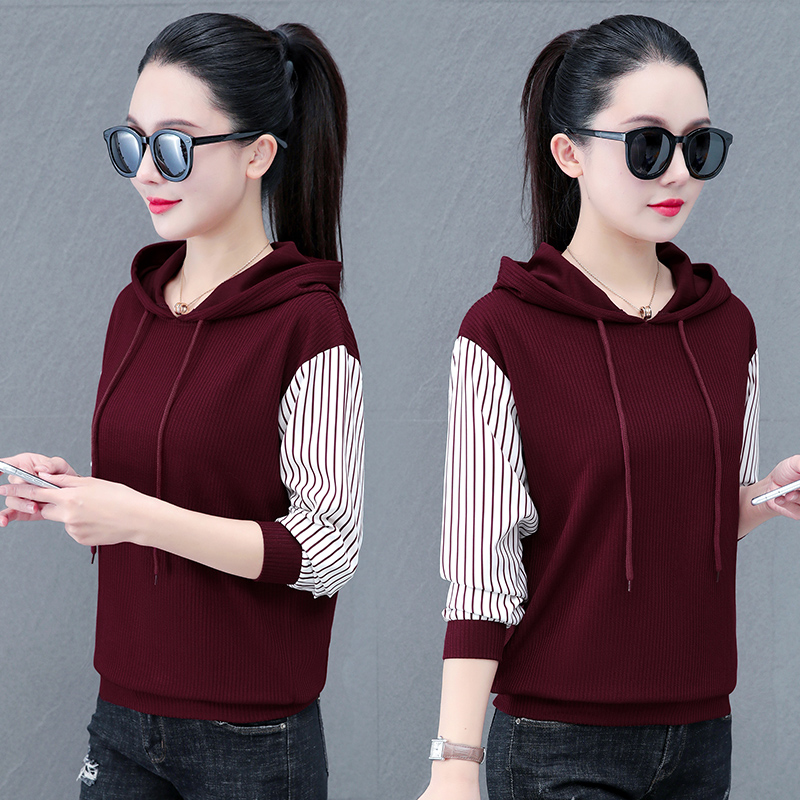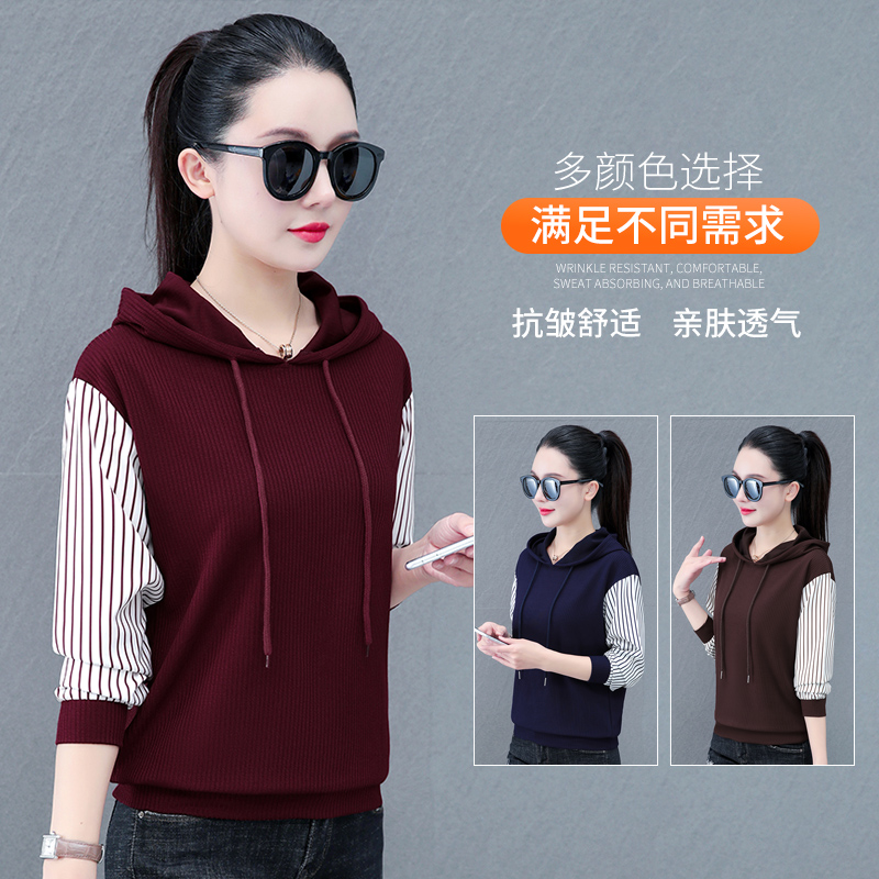长袖卫衣女春季新款春秋拼接撞色连帽宽松休闲上衣 服裝批發女裝批發服飾貨源