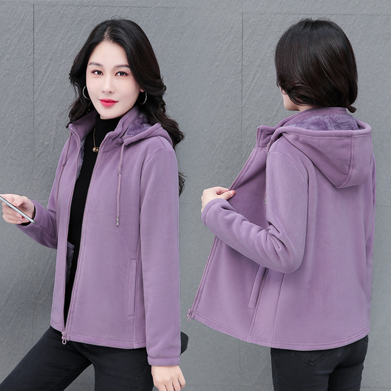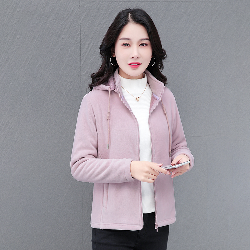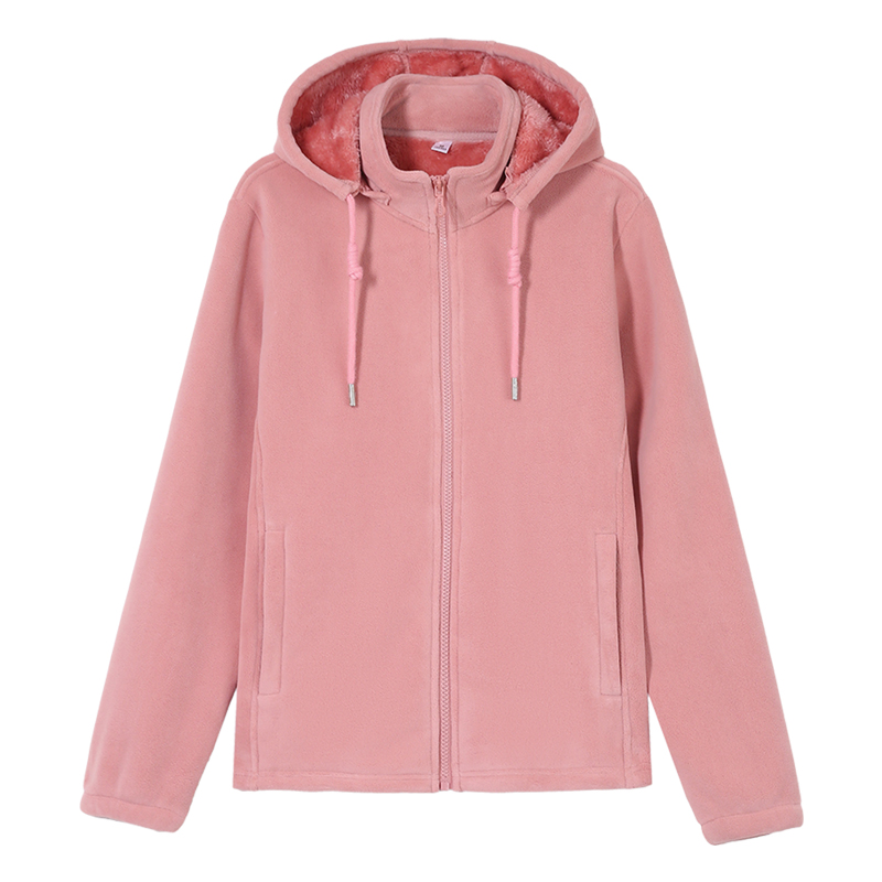 冬季女新款奥粒绒连帽外套加绒休闲运动女款连帽抓绒外套 服裝批發女裝批發服飾貨源