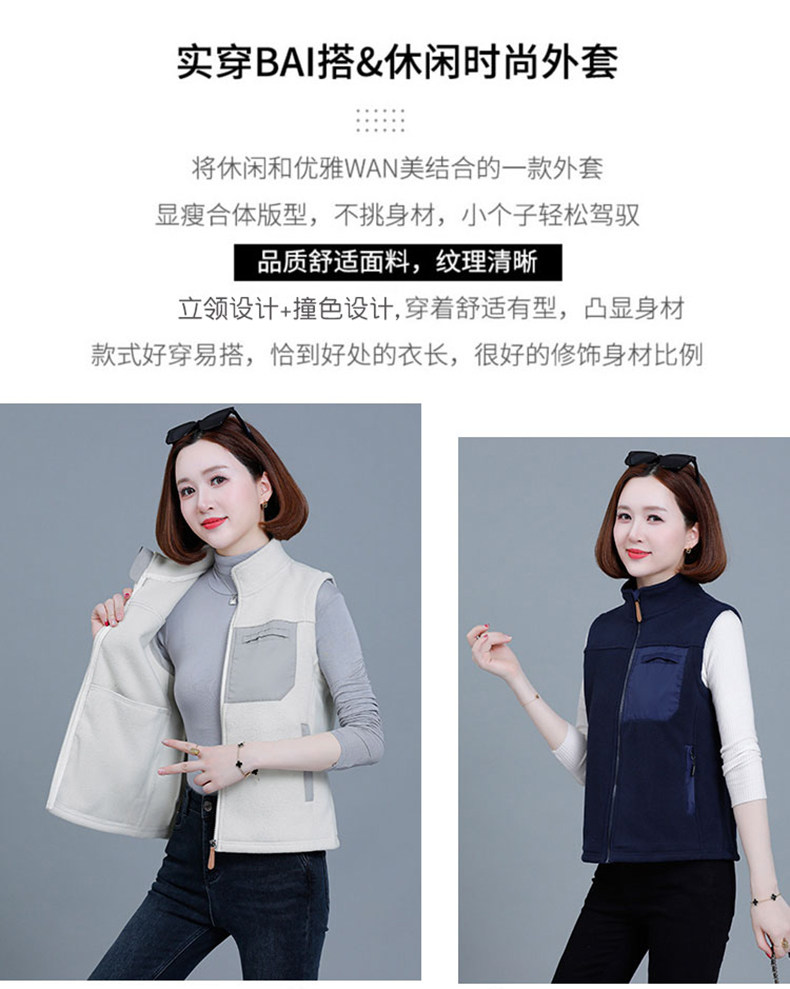 摇粒绒马甲女新款春秋韩版外套上衣保暖坎肩马夹背心 服裝批發女裝批發服飾貨源