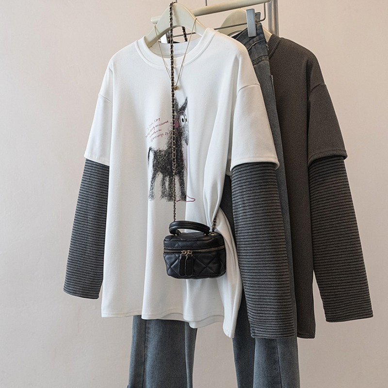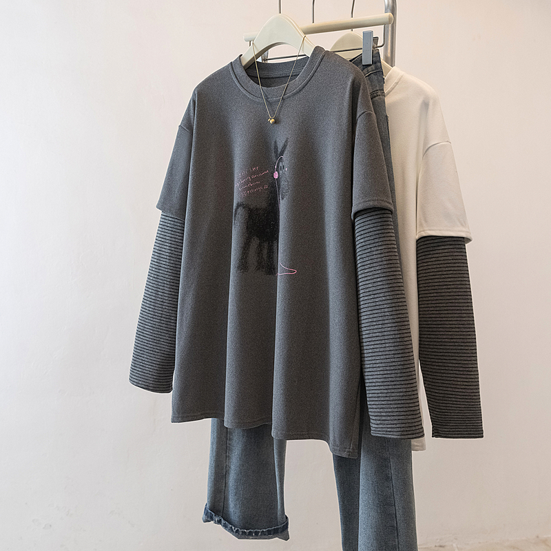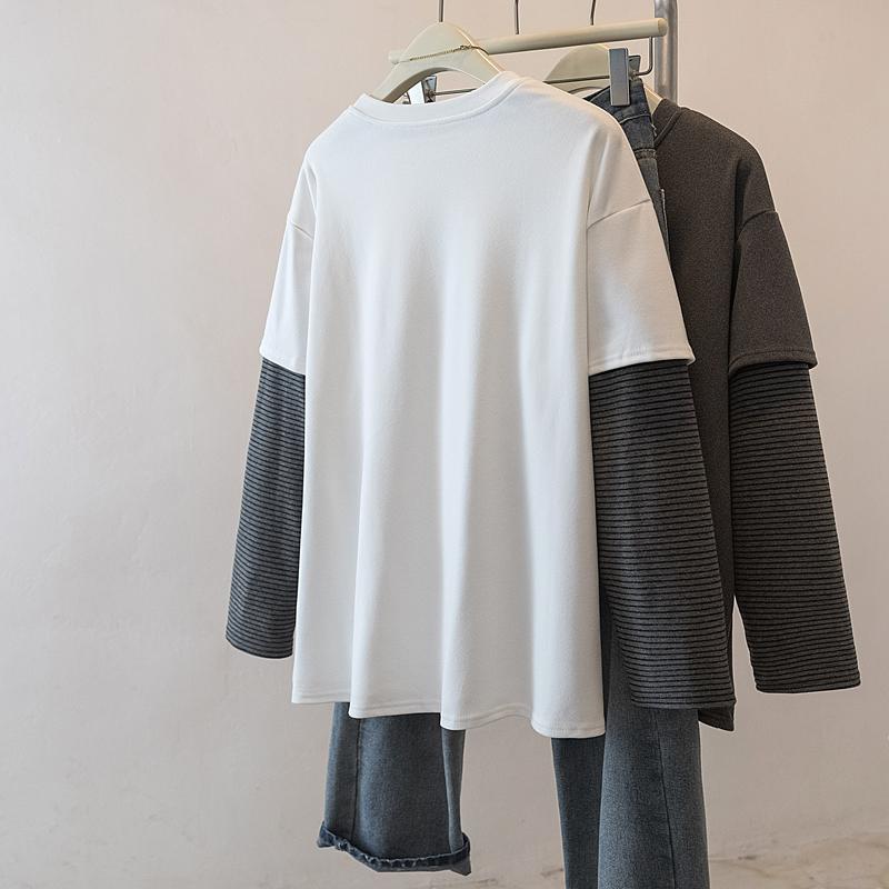 FA54076# 大码女装早春新款设计感减龄拼接假两件遮肚显瘦百搭上衣 服裝批發女裝批發服飾貨源