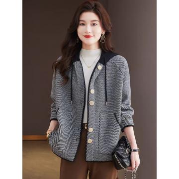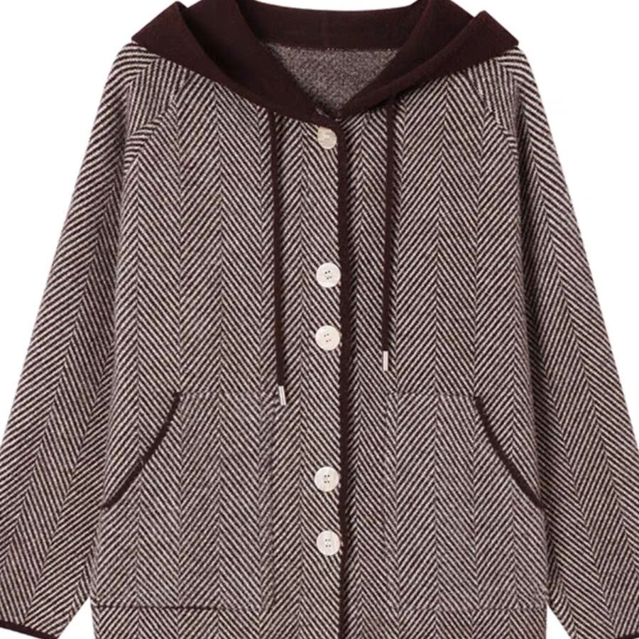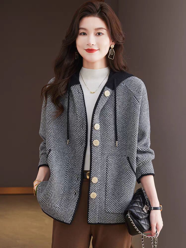FA54124# 连帽超好看的外套女士洋气加厚秋冬新款宽松显瘦毛呢针织大衣 服裝批發女裝批發服飾貨源